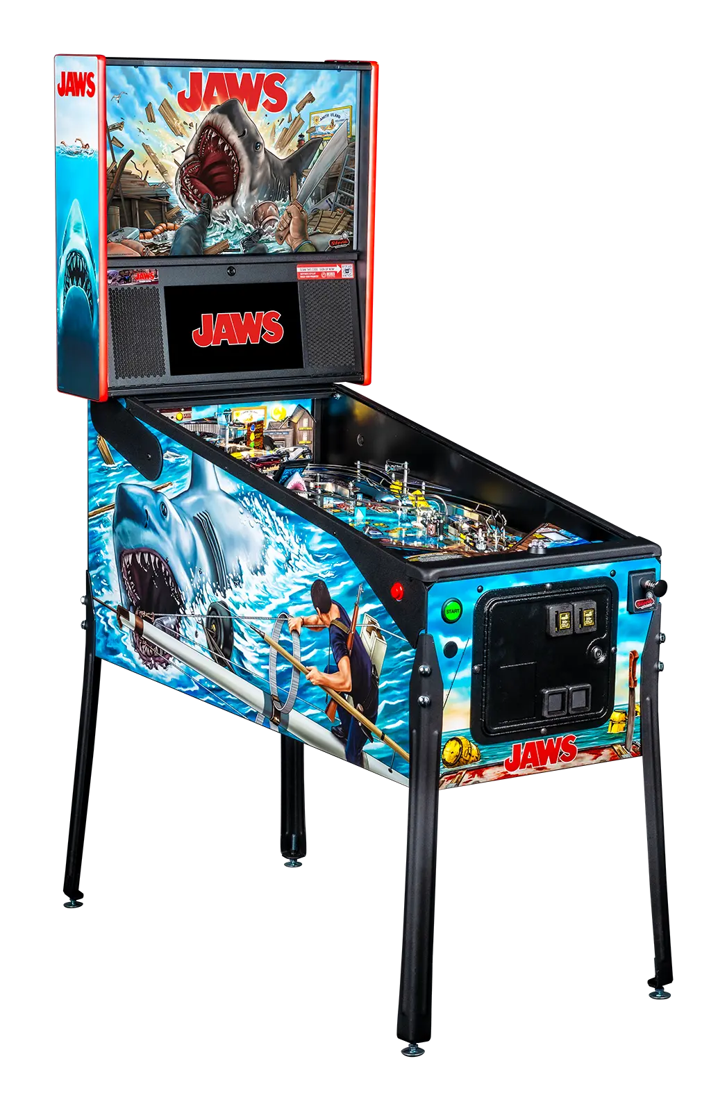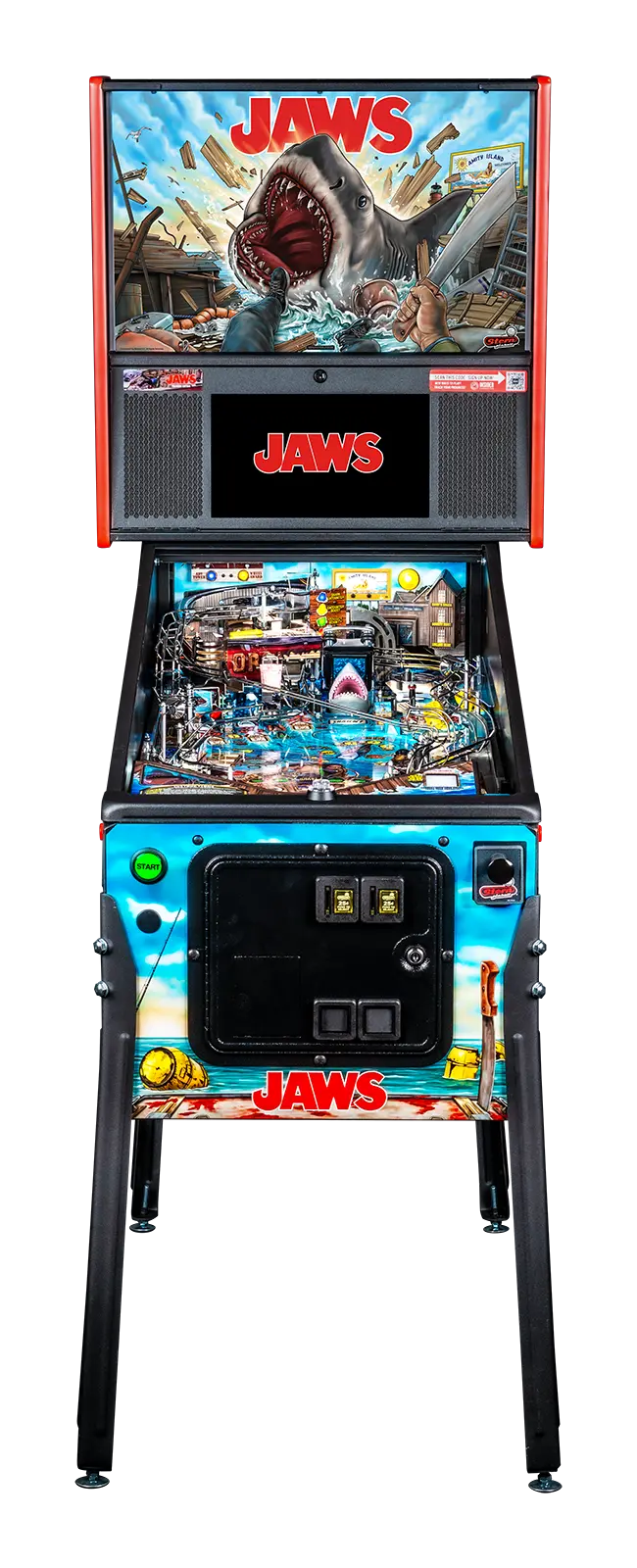 Stern Pinball, Inc. announces their newest pinball games featuring JAWS, one of the most iconic motion picture thrillers of all time from Universal Pictures and Amblin Entertainment. Players will experience all four blockbuster JAWS films like never before, with brand-new mechanical features inspired by iconic movie moments and state-of-the-art technology. JAWS pinball games are available in Pro, Premium, and Limited Edition (LE) models.