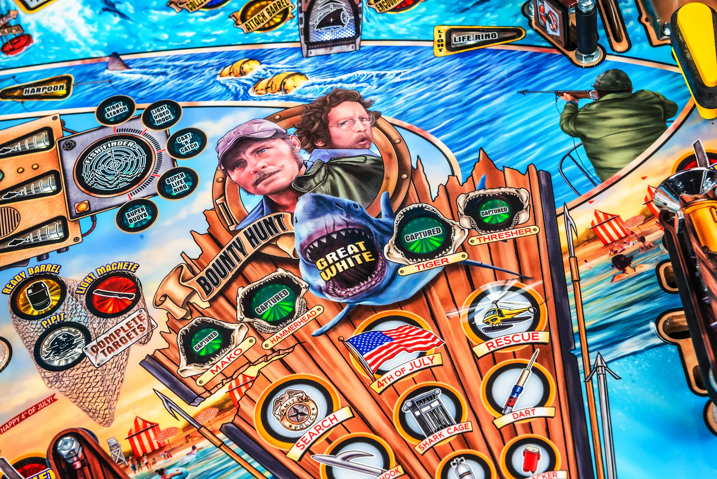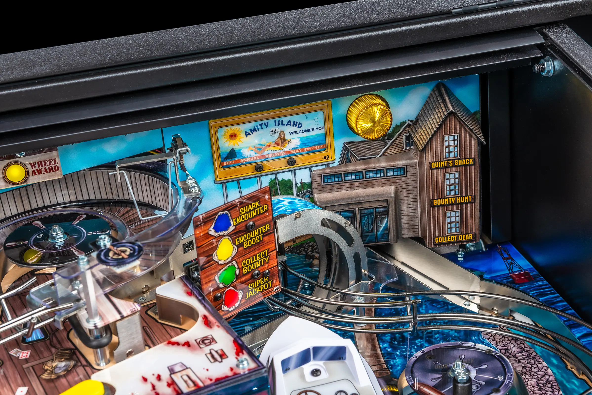 JAWS pinball games include Stern’s award-winning Insider Connected™ system, which enables players to interact with the game and a global network of players in multiple ways. Through Insider Connected, players can track progress, hunt Achievements, take on special JAWS Quests, and work on their lifetime Bounty Hunter rank.
