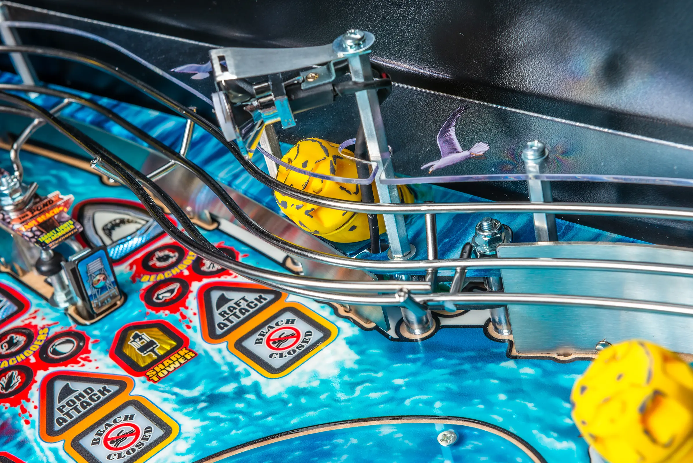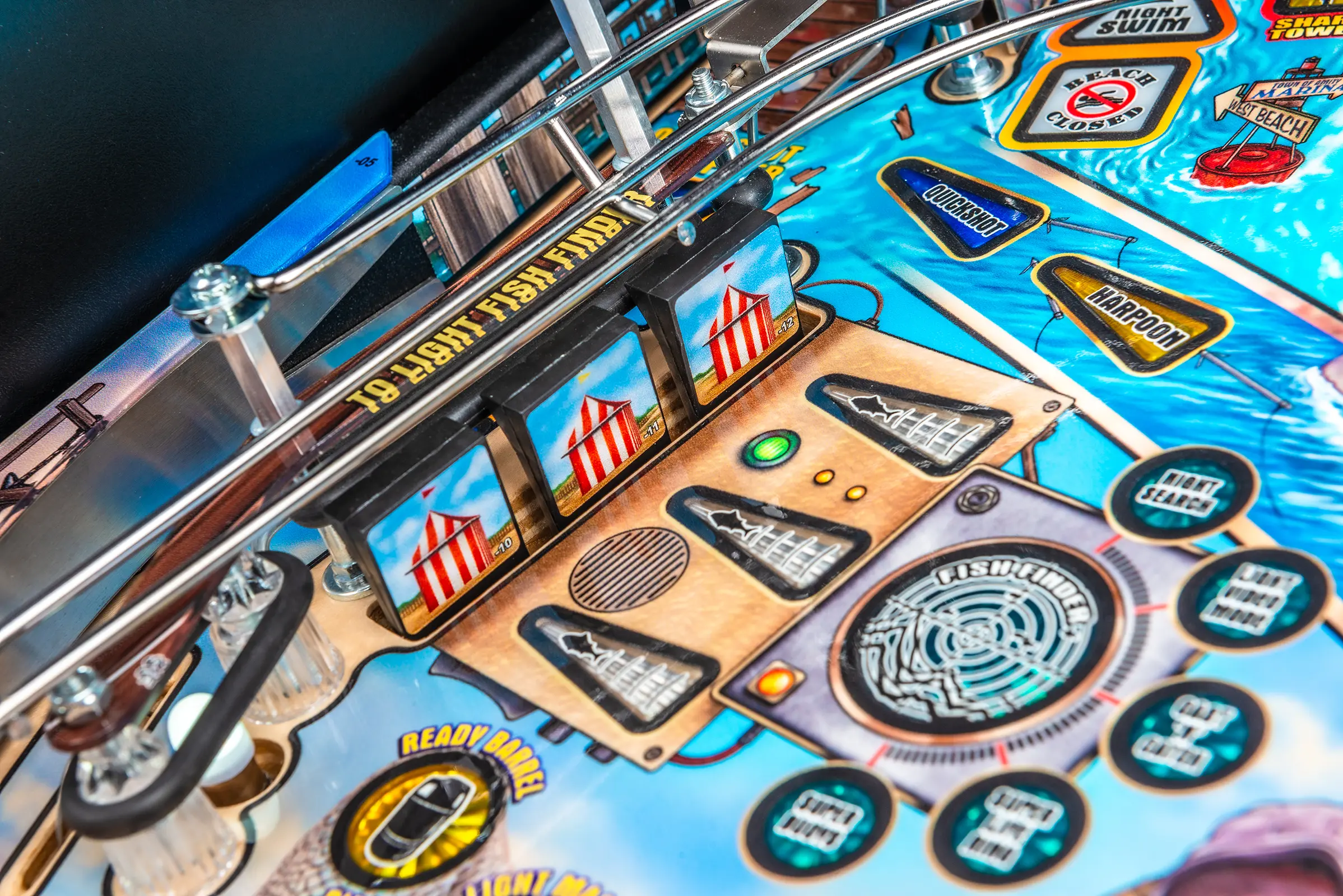 Limited to 1,000 games globally, the highly collectible Limited Edition model includes a full-color mirrored backglass based on the iconic JAWS movie poster by world-renowned artist Roger Kastel, full-color reflective foil high-definition cabinet decal with hand-drawn artwork by Michael Barnard, exclusive custom “Great White” powder-coated pinball armor, Speaker Expression Lighting with JAWS-themed game effects (sonar, water, blood in the water, and more!), a custom designer-autographed bottom arch, exclusive inside art blades, upgraded audio system, anti-reflection pinball playfield glass, shaker motor, a sequentially numbered plaque, and a Certificate of Authenticity signed by Stern President & CEO Seth Davis and Chairman & Founder Gary Stern.