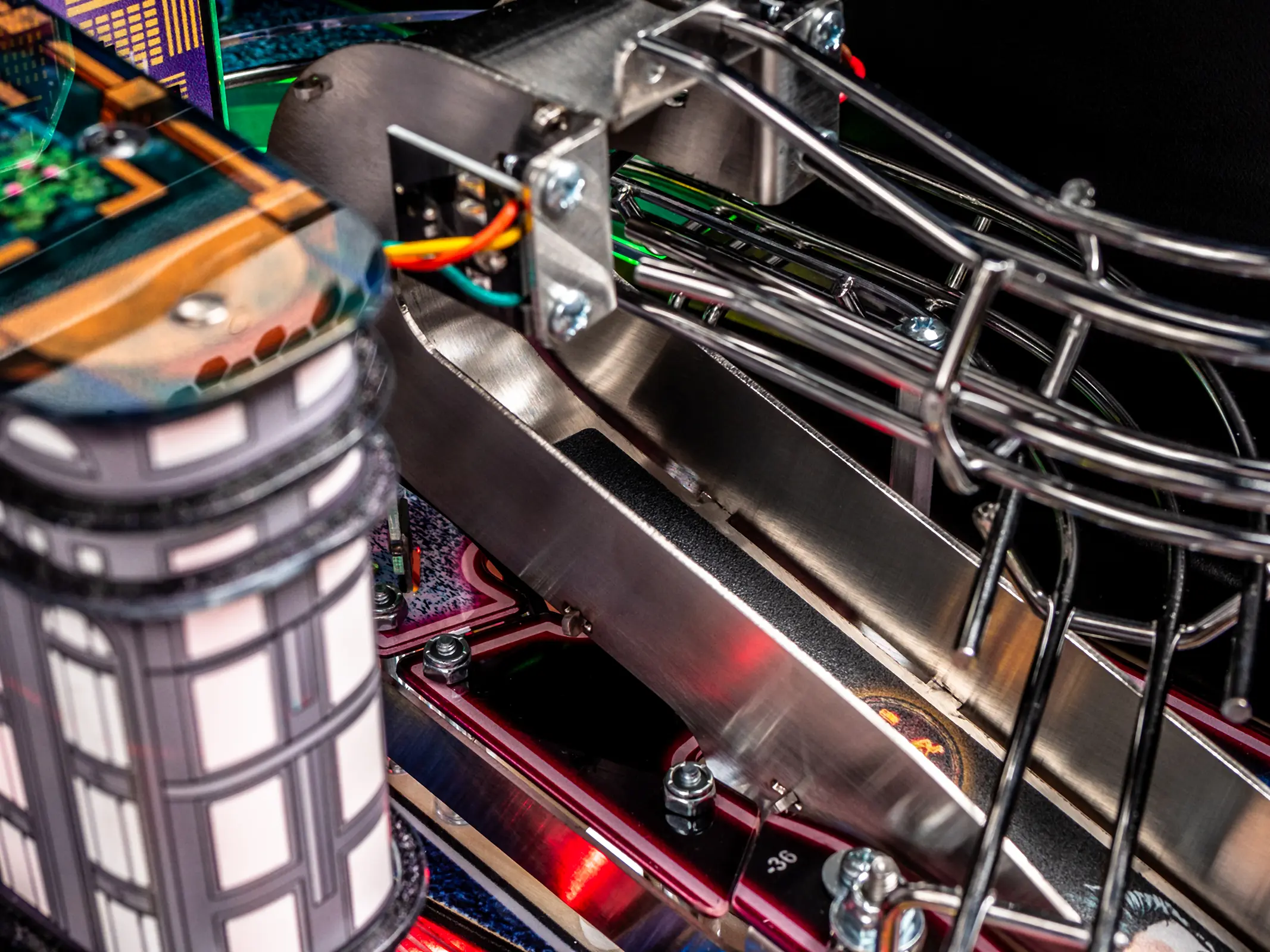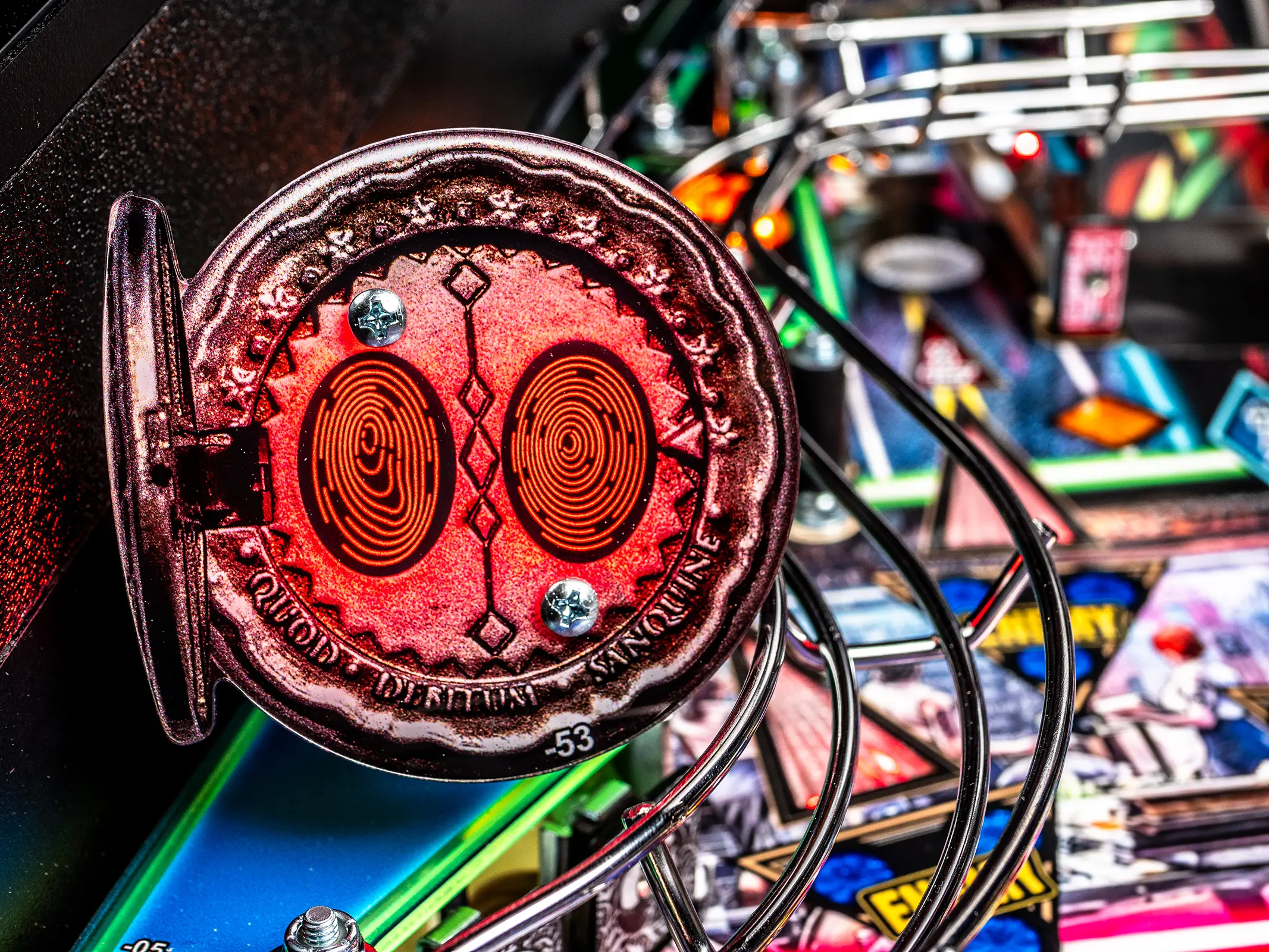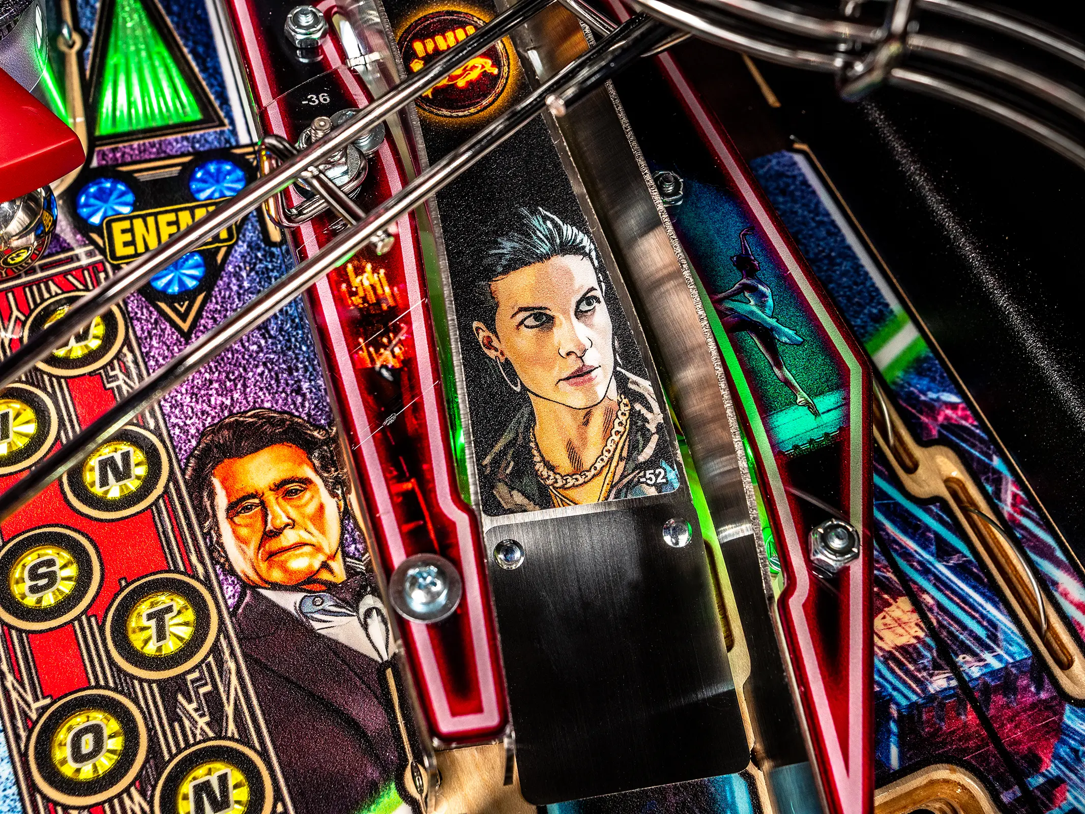 Limited to 1,000 games globally, the highly collectible Limited Edition model includes the Expression Lighting System™ and Speaker Expression Lighting. These integrated lighting systems are synchronized to custom light shows specifically designed for every song and dynamically responsive to game events. The LE version also includes a full-color “Stained Glass” mirrored backglass, full-color reflective brushed silver foil high-definition cabinet decals with hand-drawn artwork by Randy Martinez, exclusive custom powder-coated pinball armor, a custom designer-autographed bottom arch, upgraded audio system, anti-reflection pinball playfield glass, shaker motor, a sequentially numbered plaque, and a signed Certificate of Authenticity.