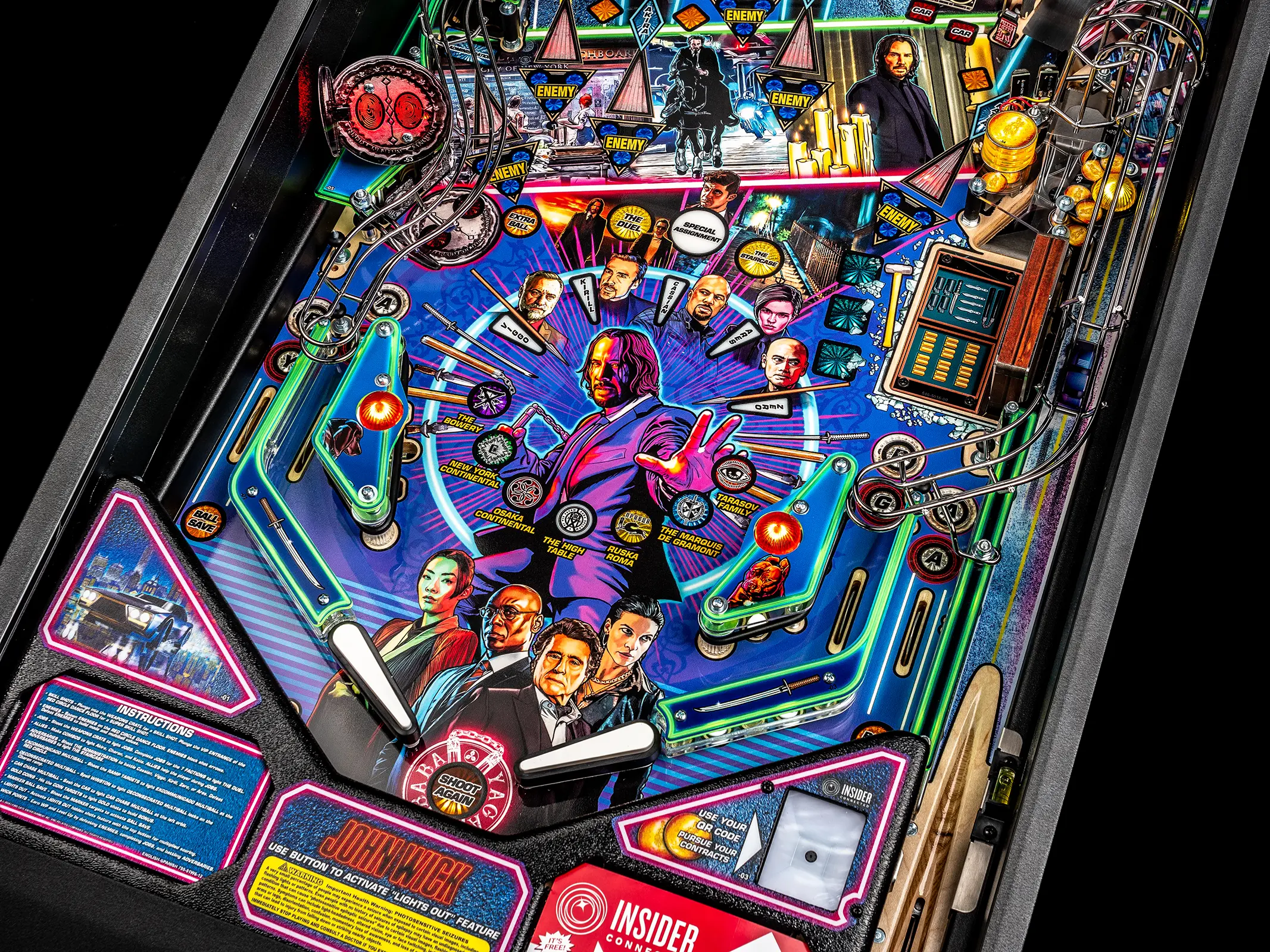John Wick pinball games include Stern’s award-winning Insider Connected™ system, which enables players to interact with the game and a global network of players in multiple ways. Through Insider Connected, players can track progress, earn new game-specific Achievements, take on special John Wick Quests and complete Faction Contracts to increase their Assassin ranking.