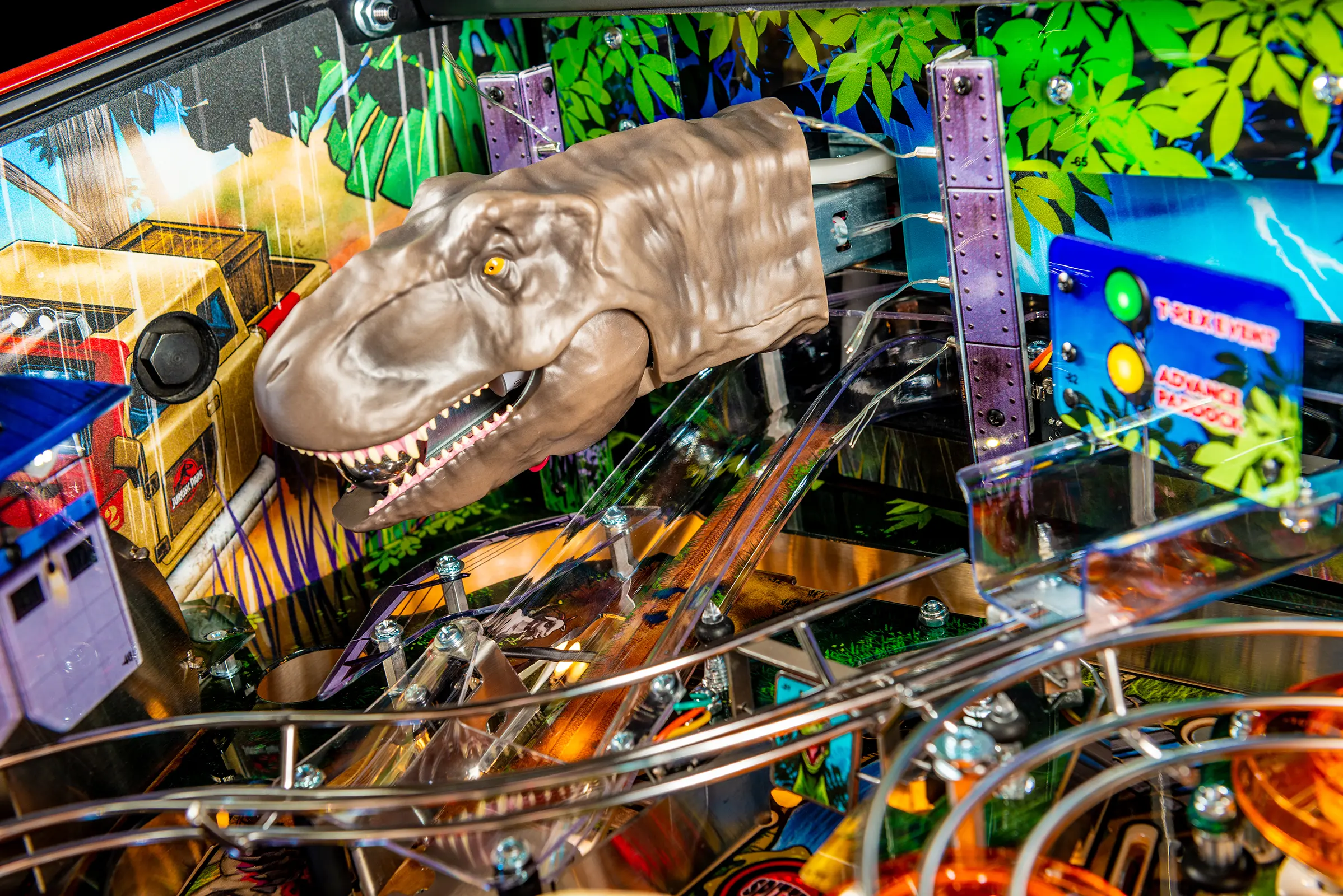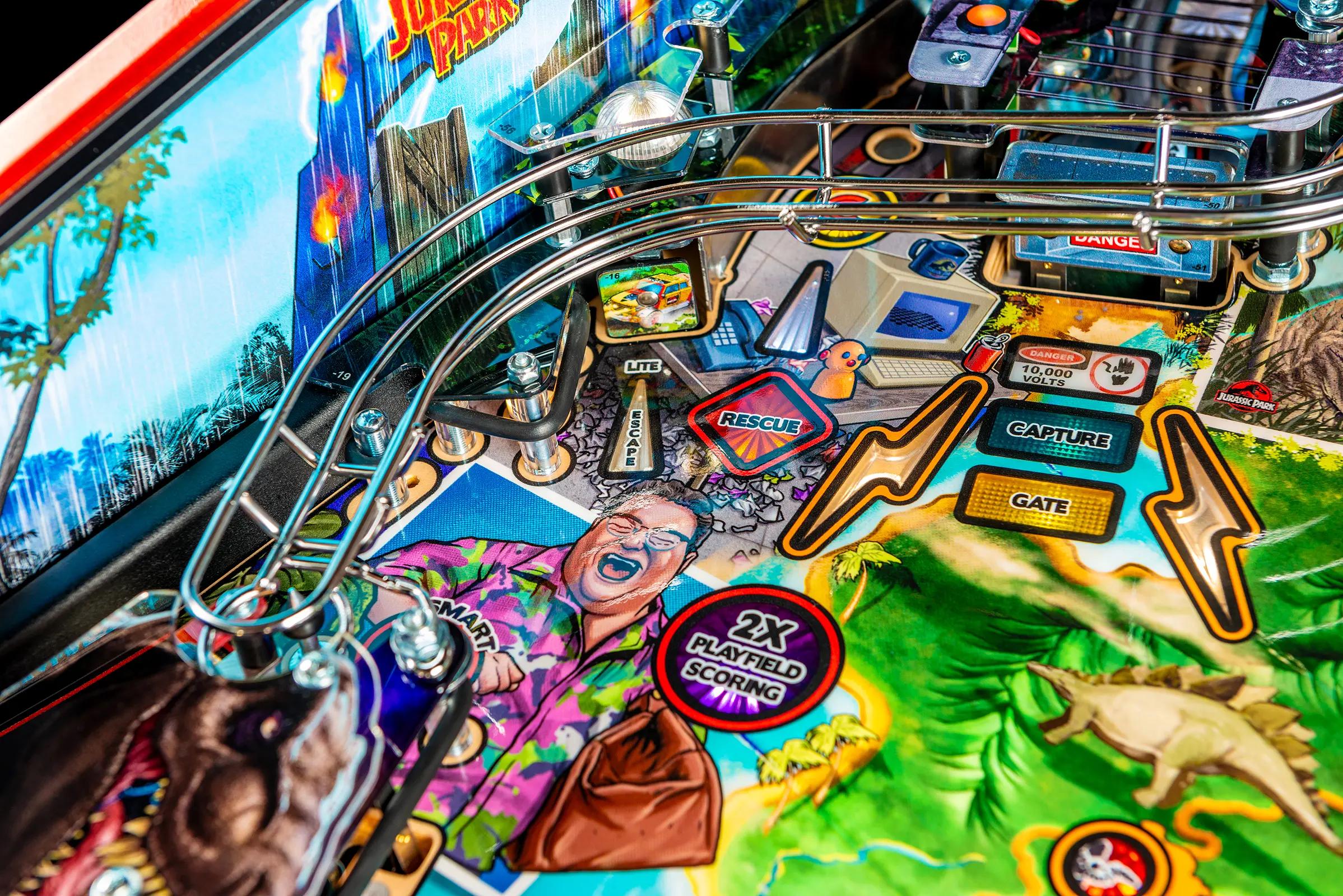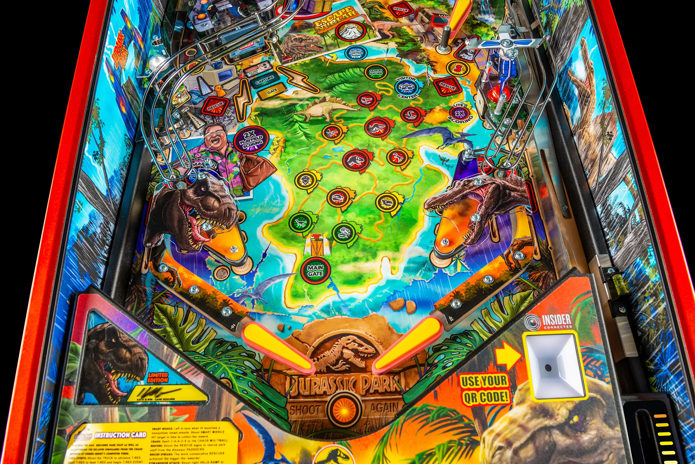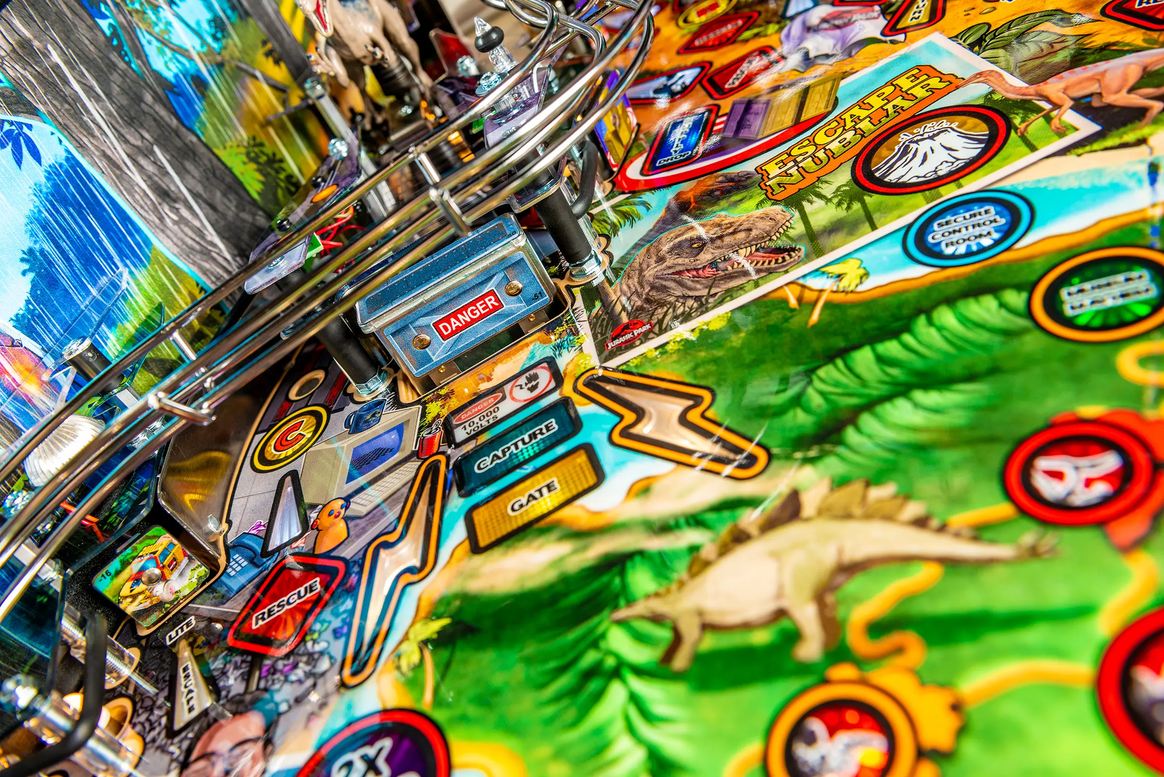 - Includes a custom designer-autographed bottom arch, inside art blades, upgraded audio system, anti-reflection pinball playfield glass, andd shaker motor upgrade!