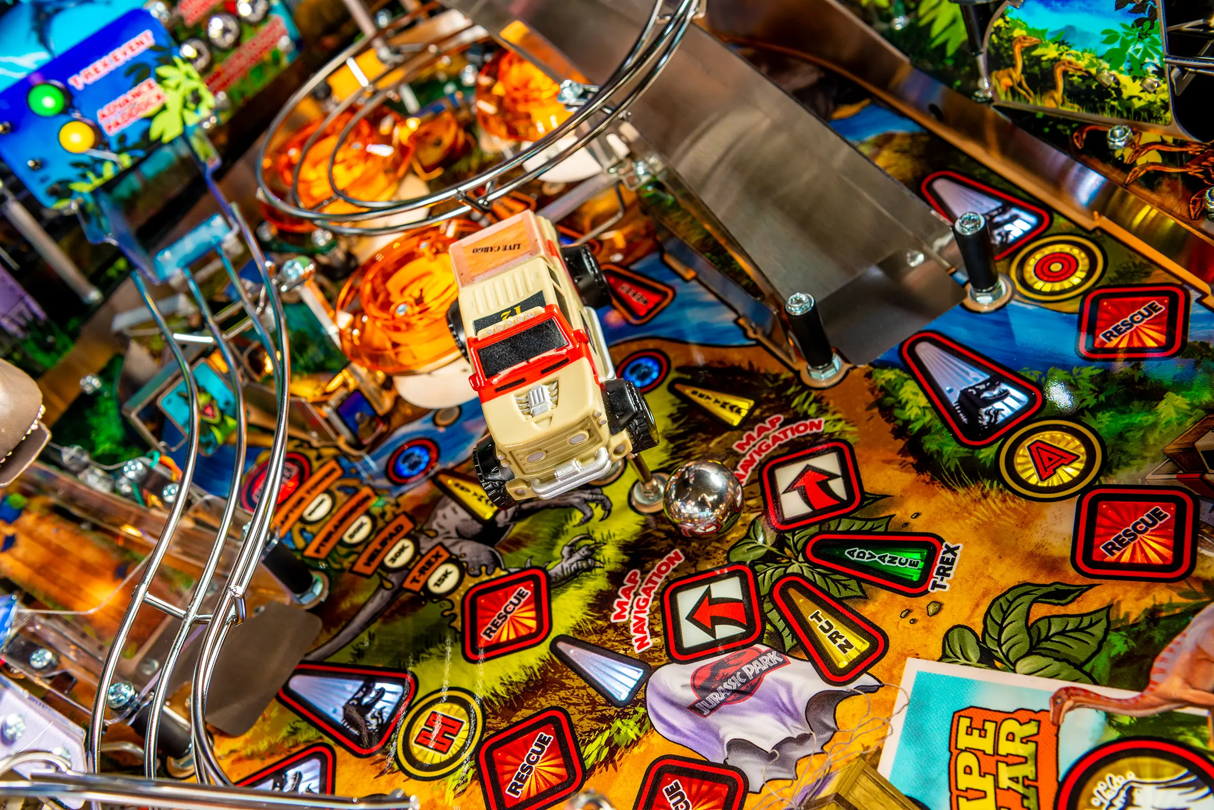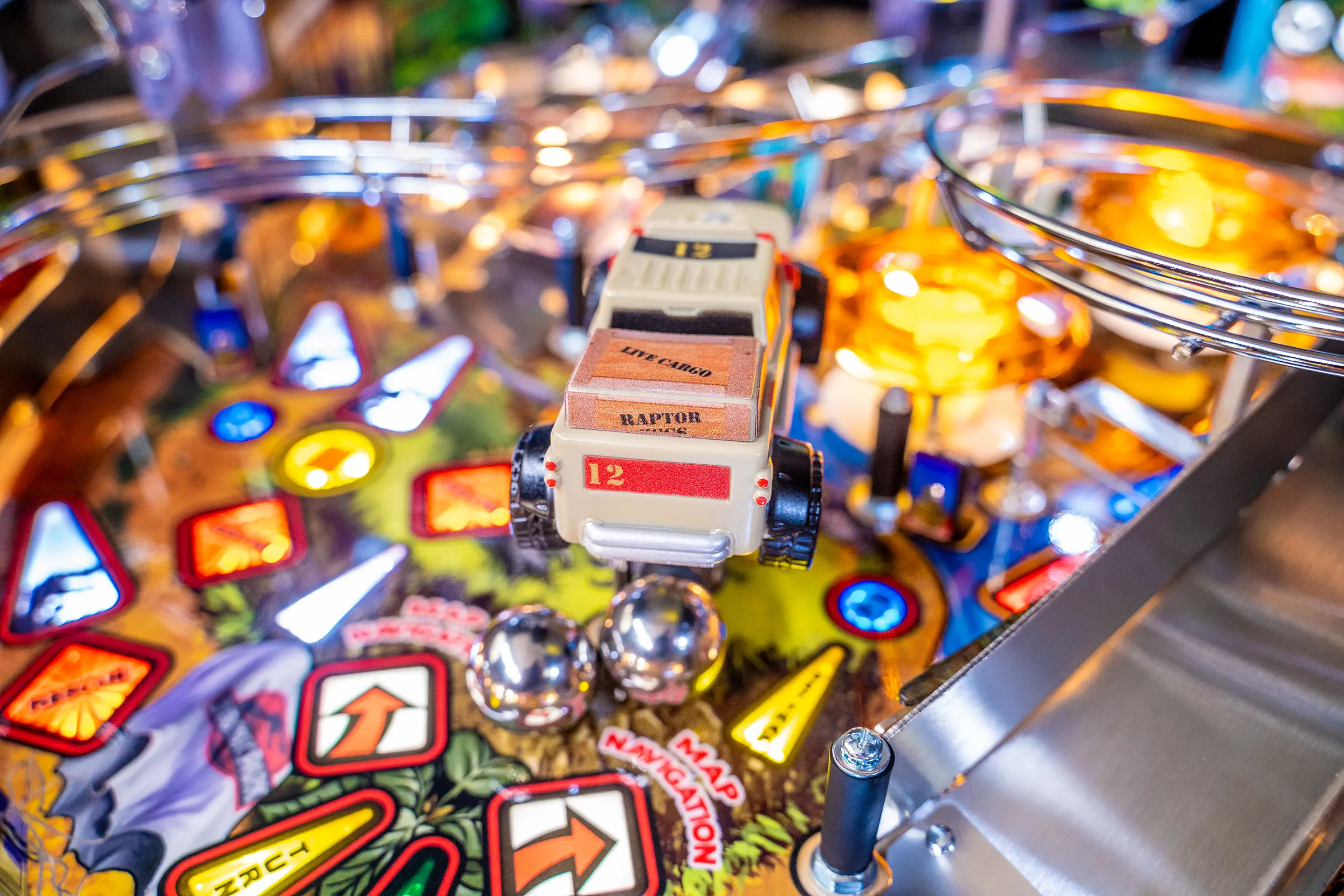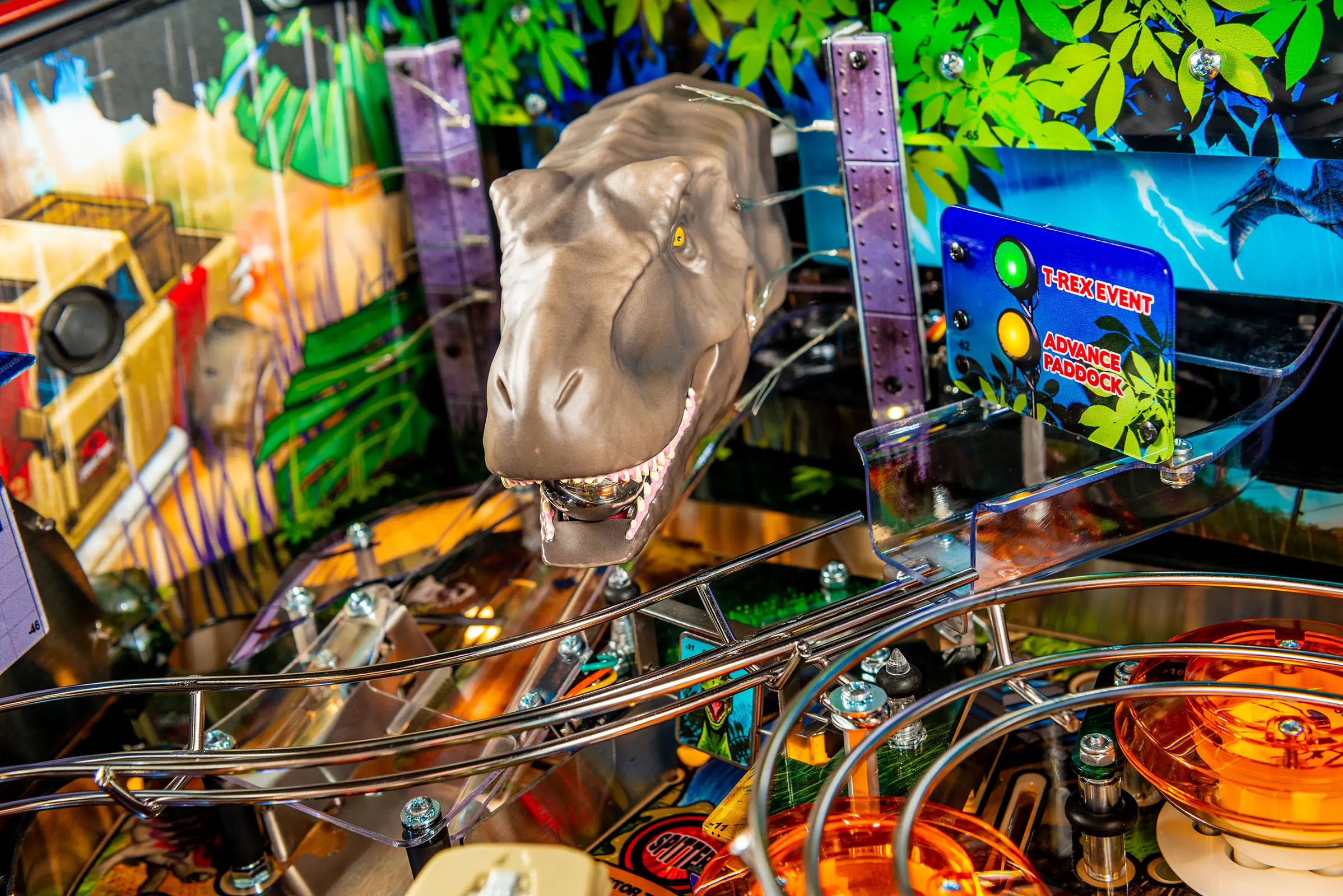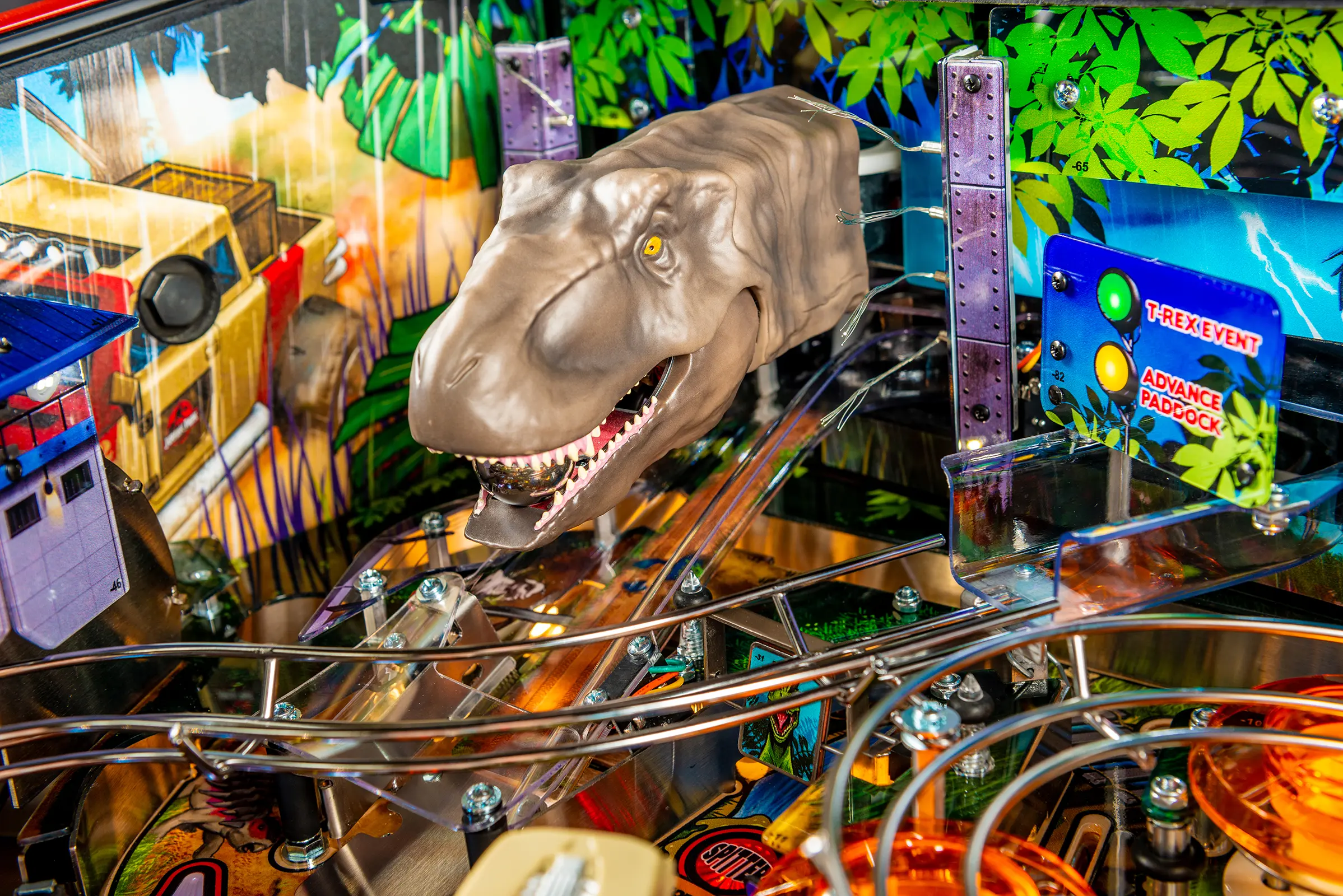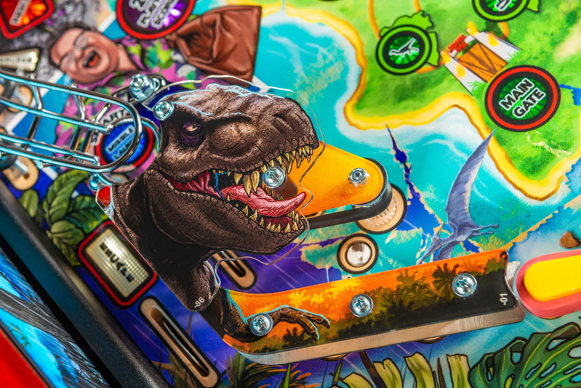 - Includes a custom designer-autographed bottom arch, inside art blades, upgraded audio system, anti-reflection pinball playfield glass, andd shaker motor upgrade!
