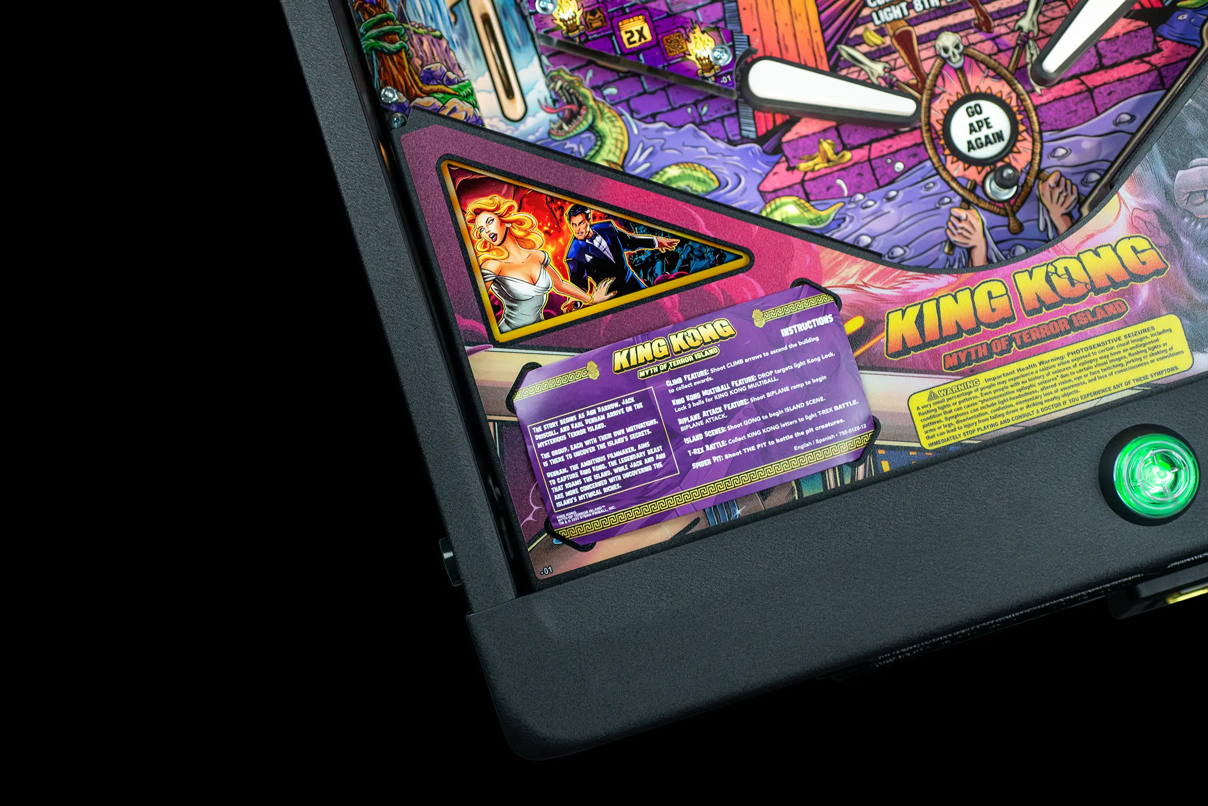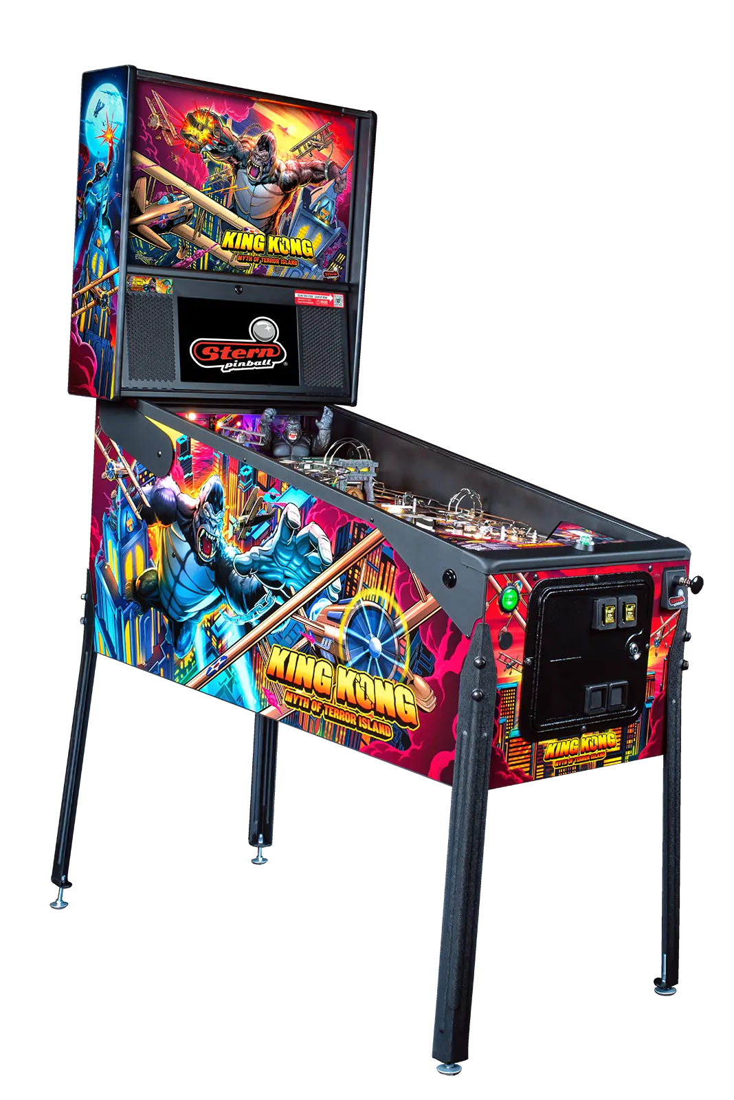King Kong has been a leading force in cultural media since his first appearance in 1932 and has influenced every medium of entertainment through films, television, books, art, comics, video games, and more. Stern Pinball takes players on an all-new journey through the fabled King Kong original story, creatively re-invented specifically for pinball. King Kong: Myth of Terror Island pinball games are available in Pro, Premium, and Limited Edition (LE) models.