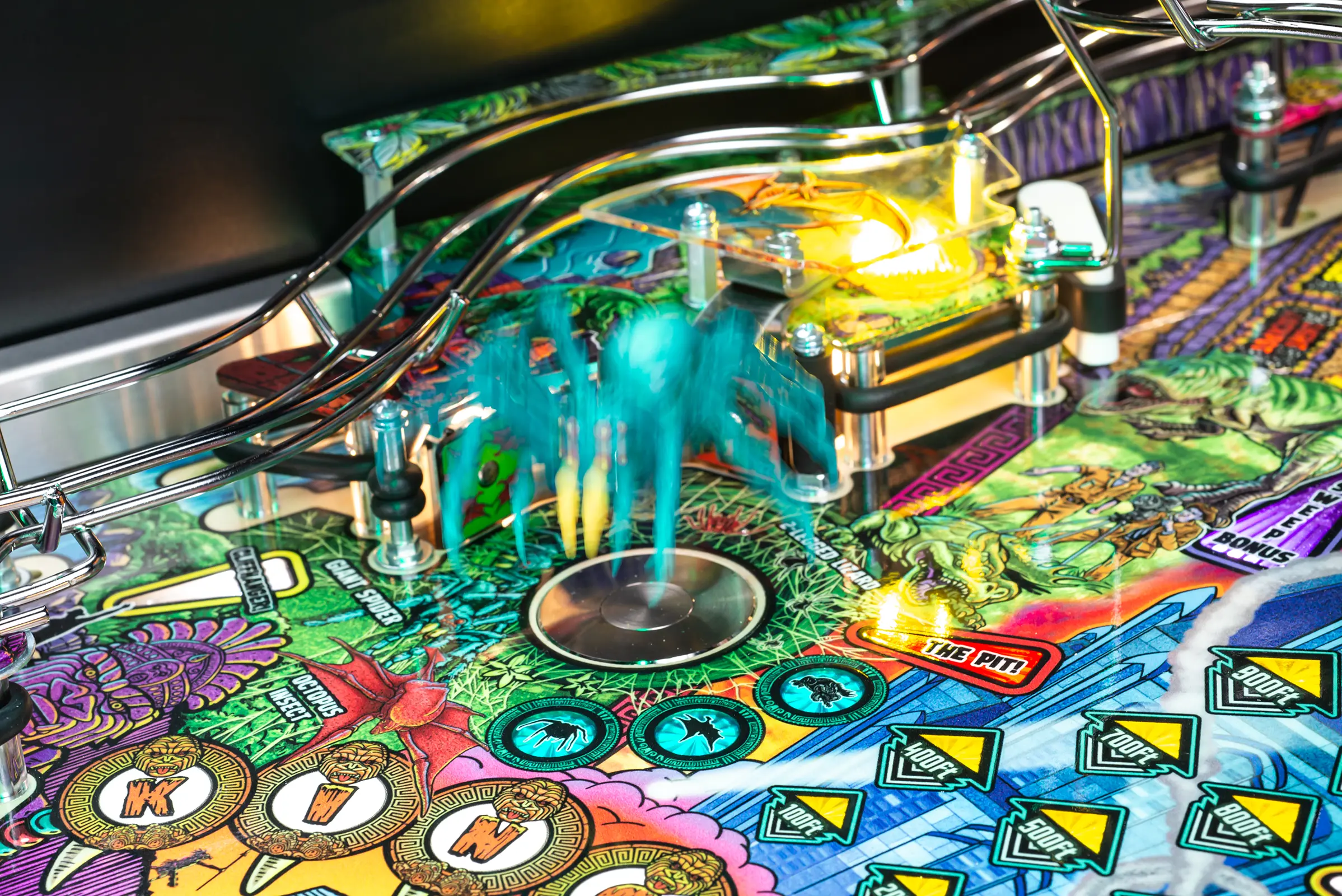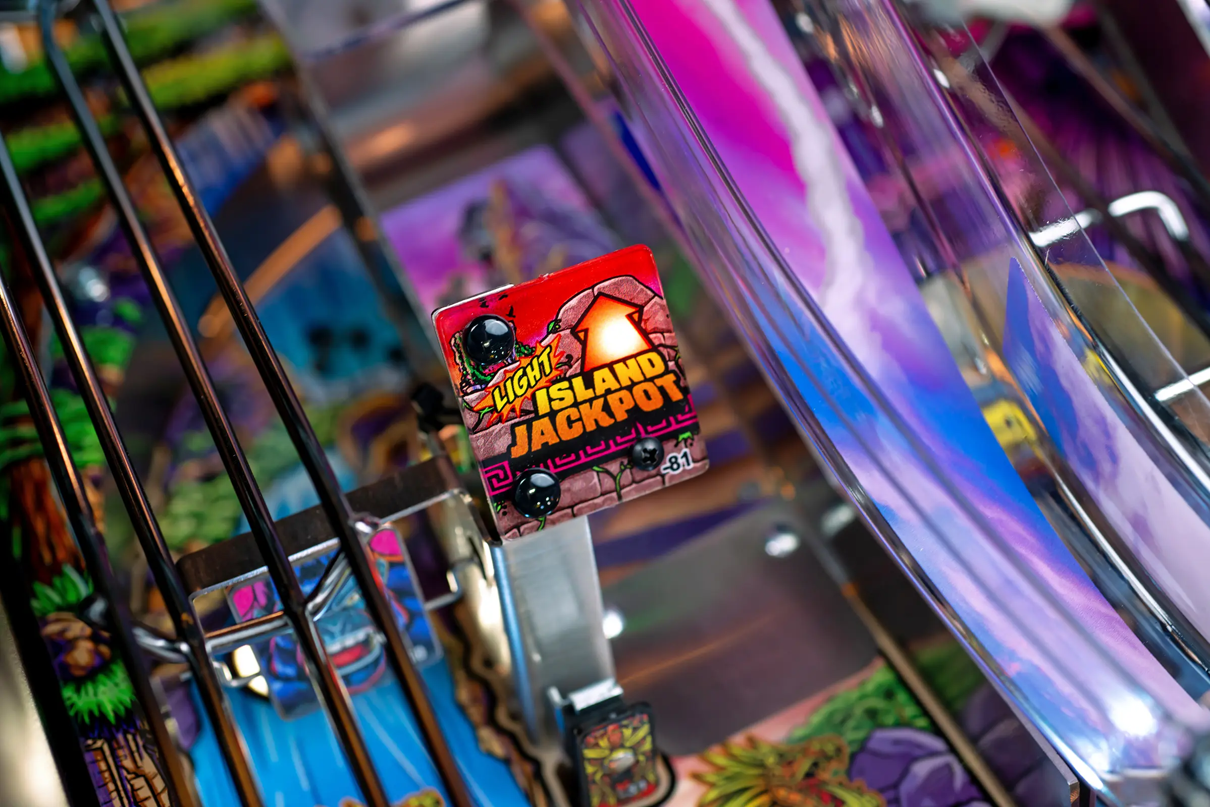 Thrilling gameplay features and challenges await players on this four-flipper adventure. Unlock the secrets of the Lost Temple four bank drop targets with a hidden standup target and navigate into the Kong Cave scoop and vertical up kicker. Survive Kong’s punch-back kicking target, which launches balls back at the player. This pinball adventure highlights original animations, music, sounds, and speech, with original art brought to life by legendary pinball illustrators Kevin O’Connor, Greg Freres, and Jeremy Packer aka Zombie Yeti. Custom speech is provided by comedy legend Brian “Q” Quinn from Impractical Jokers fame, along with Rick Zieff, Peter Mackenzie, and Scott Mosenson.