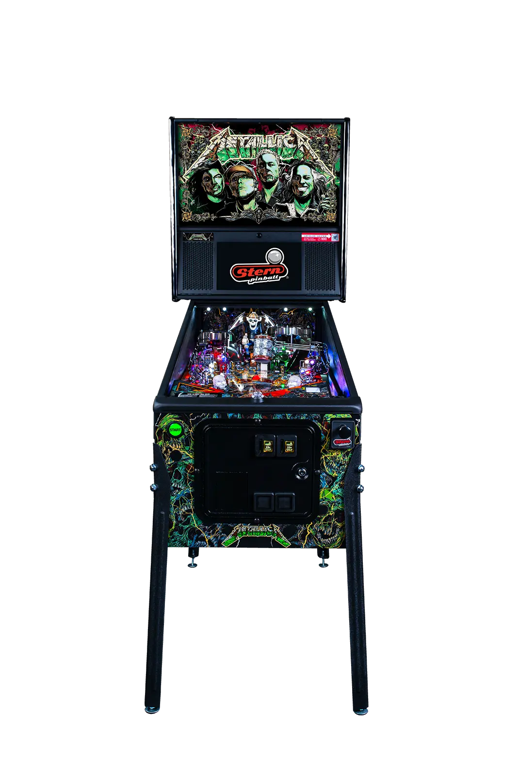Metallica Remastered is updated with a full-color LCD display featuring all-new animations and live concert video footage. Stern’s modern Spike 2 electronics will power the gameplay experience. Fans will enjoy expanded gameplay and improved presentation with 22 songs (8 more than the original) and expanded gameplay rules. Cabinet improvements include an Expression Lighting system and 2 all-new art packages by Metallica artist Rhys Cooper. Players will experience the same great flow from the original Metallica playfield layout with geometry and mechanical improvements, new versions of gameplay toys, updated mechanical devices, and new UV lighting effects.