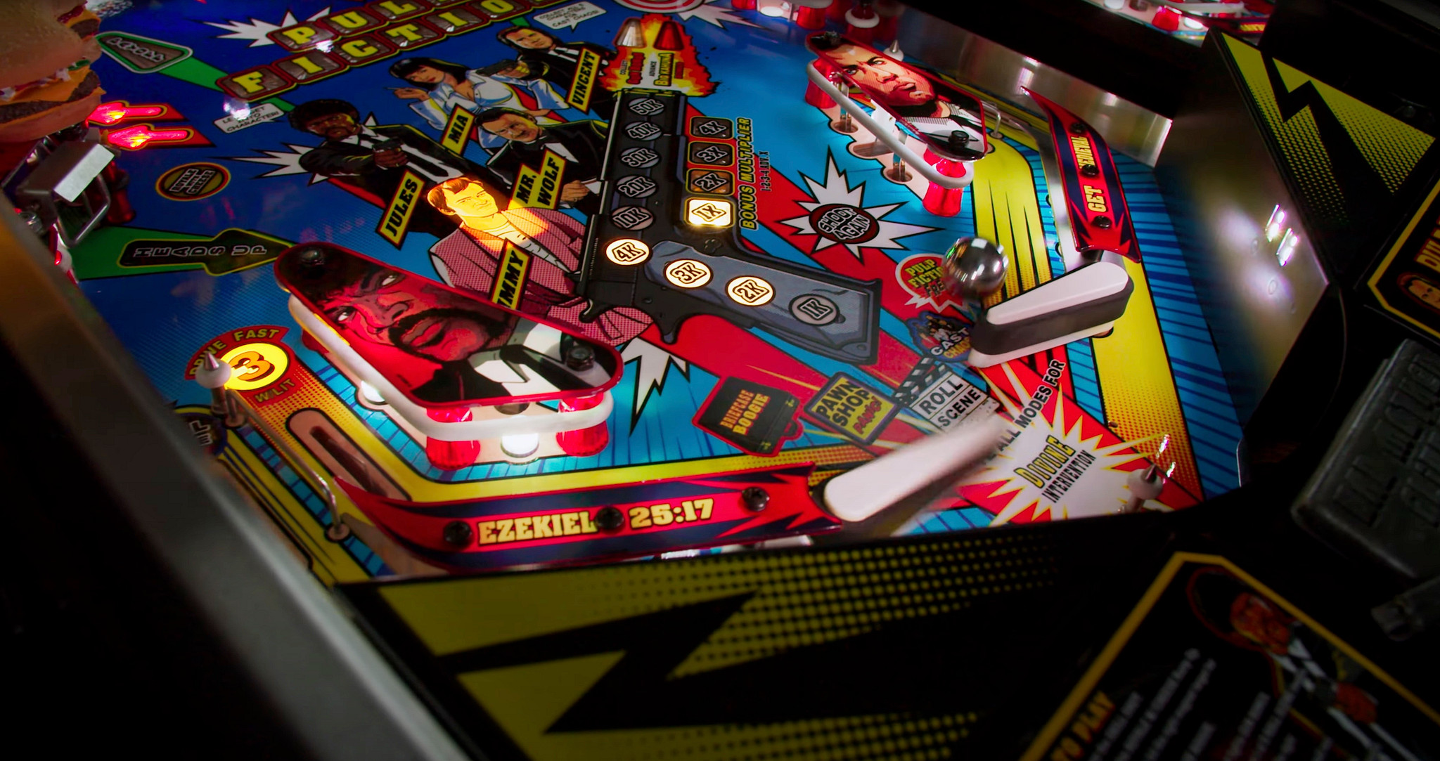 Pulp Fiction is a retro-inspired full-featured modern pinball machine. Developed at the request of Quentin Tarantino who wanted an 1980’s style Pulp Fiction themed pinball machine for his home. Tarantino’s continued involvement throughout the project shaped the final game. Tarantino rarely licenses his intellectual property, it is a unique privilege to produce a game which pays tribute to this masterpiece.