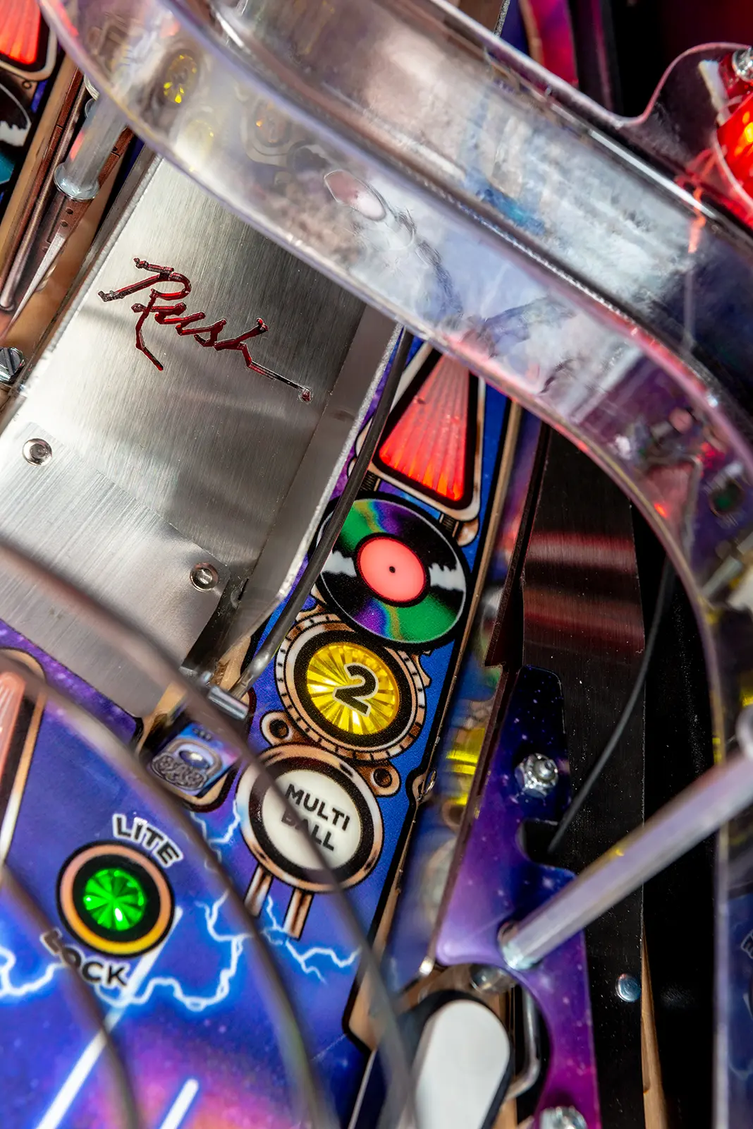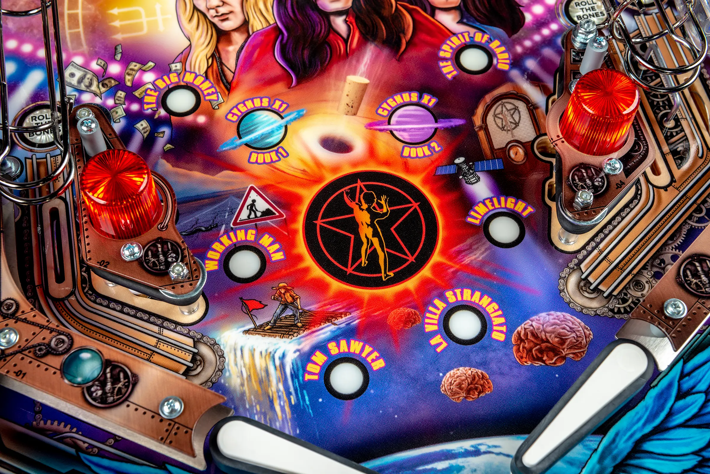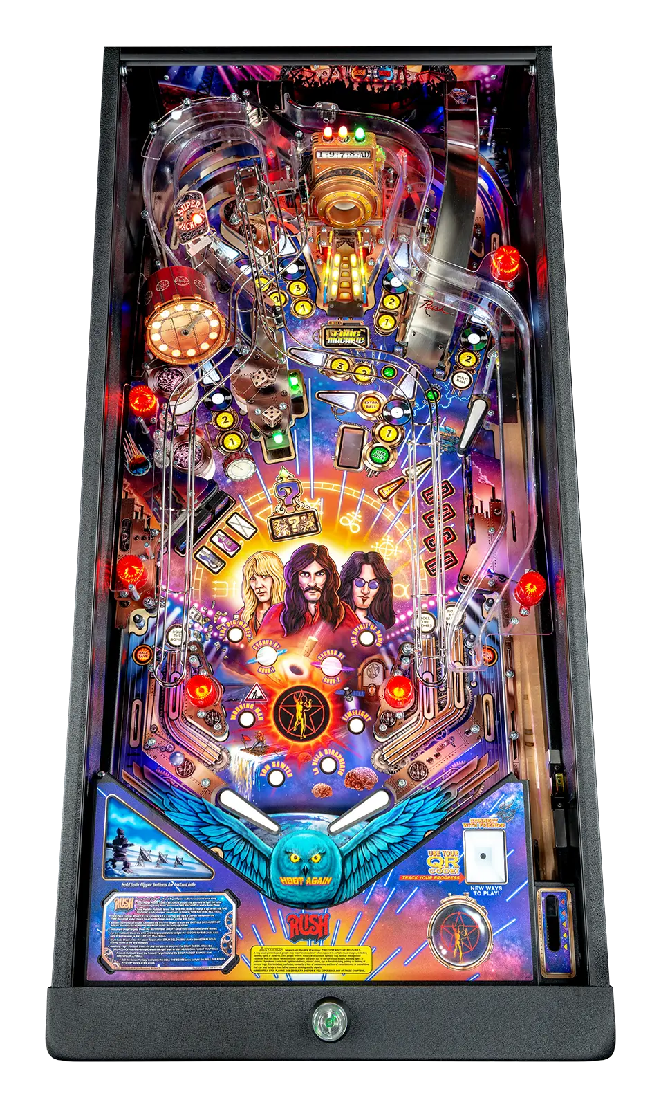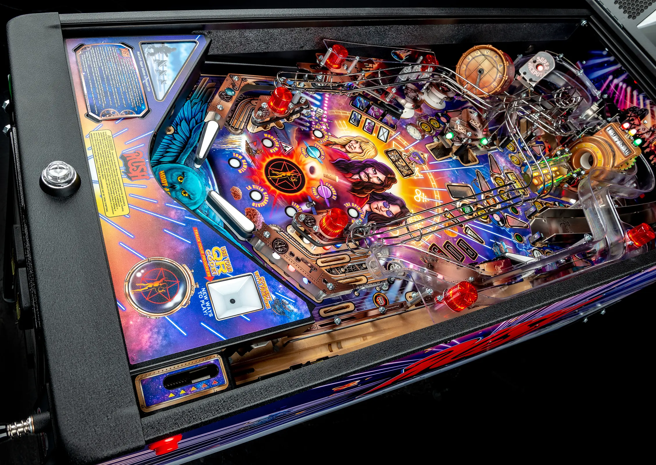Stern’s Rush pinball machines, reflect the energy, excitement, and experience of a live Rush concert.  In this epic music pinball adventure, players will travel with Rush through time.  Immersed in exclusive Rush concert footage and guided by custom speech from Alex Lifeson, Geddy Lee, and fellow Canadian Rock Hall of Famer, Ed Robertson of the Barenaked Ladies, players will experience Rush and their iconic music as never before.  This Rush pinball concert under glass features sixteen iconic songs, accentuated by sound and lighting effects.  Songs include Headlong Flight, Far Cry, One Little Victory, Working Man, 2112, Tom Sawyer, The Spirit of Radio, Freewill, Cygnus X-1 (Book One: The Voyage and Book Two: Hemispheres), The Big Money, Subdivisions, Limelight, Fly By Night, La Villa Strangiato, Bastille Day, and Red Barchetta.