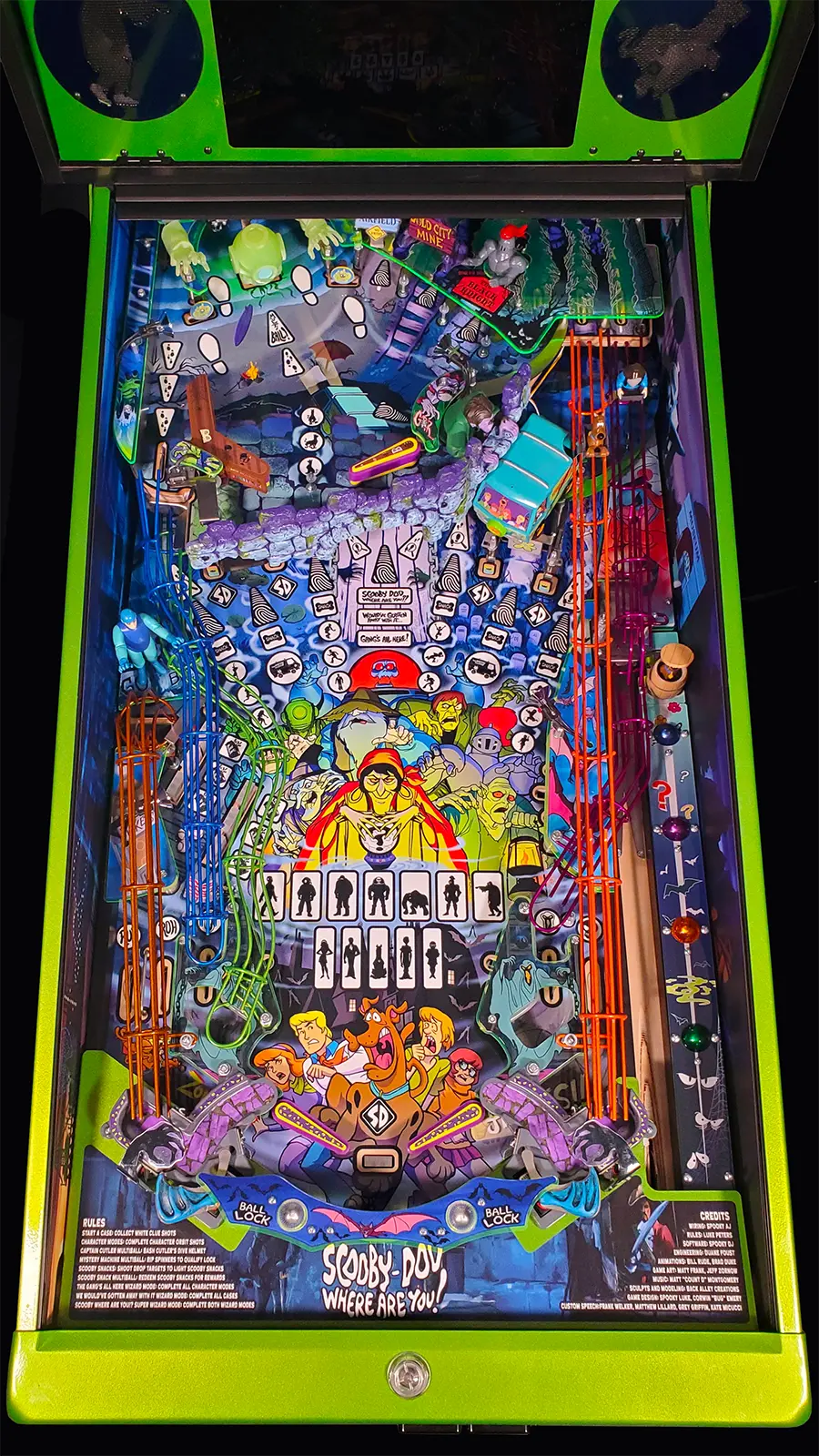 Scooby Doo Collector's Edition by Spooky Pinball is a nostalgic and exciting addition to any pinball collection. This widebody pinball machine is based on the classic cartoon "Scooby-Doo: Where are You?". The game features original clips from the show music from Matt “Count D” Montgomery and custom speech from talented voice actors: Frank Welker Matthew Lillard Kate Micucci Grey Griffin and Scott Innes. Players will be drawn into the world of Mystery Inc. Whether you're a fan of the classic cartoon or just love pinball Scooby-Doo is sure to deliver an unmasking pinball experience. The Collector's Edition is our highest tier package and will be built before all other packages. This package features: