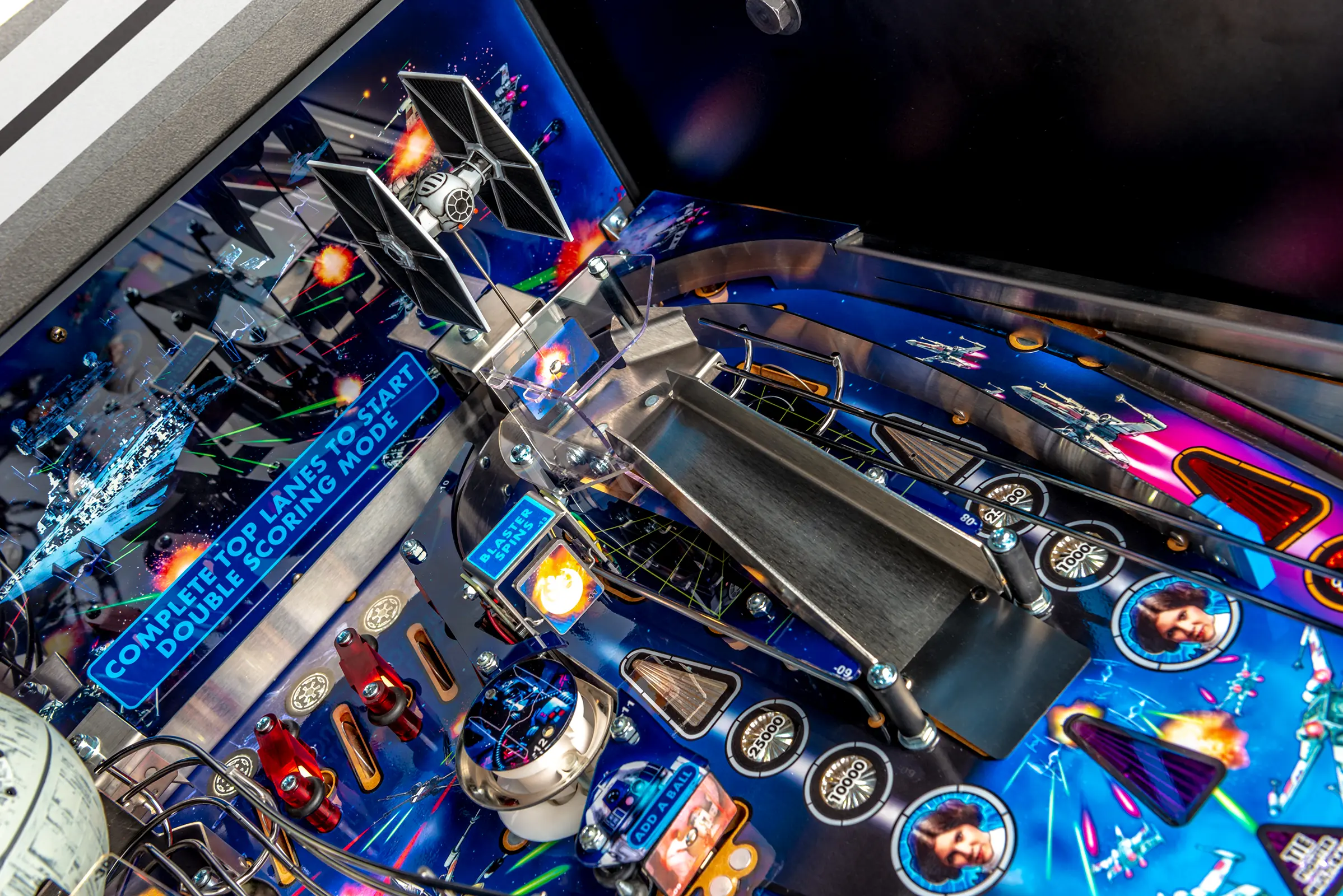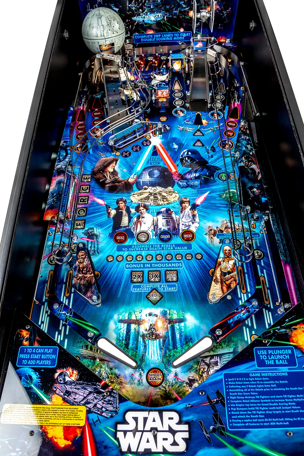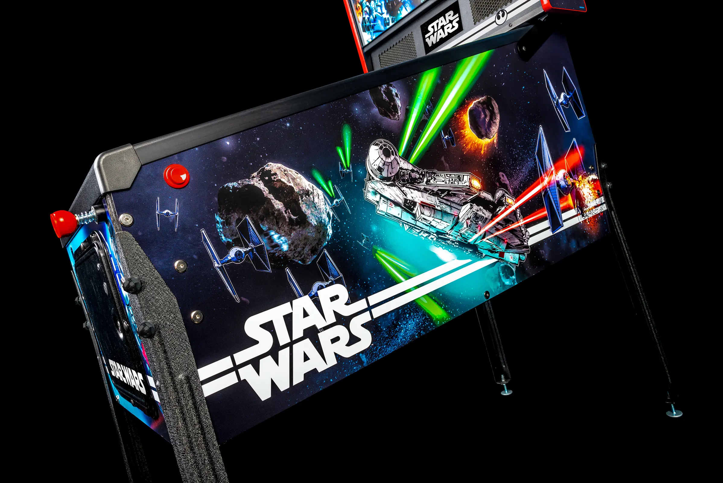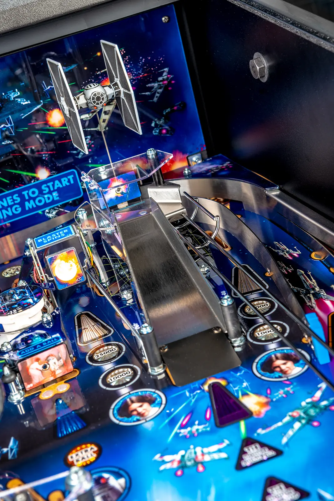 Stern Pinball’s Star Wars™ Home Edition™ is a new stylish, affordable and fun pinball machine designed and engineered for the home. Stern’s new Star Wars™ Home Edition™ immerses players in the dynamic Star Wars™ galaxy. The Home Edition™ is packed with features that provide players with an irresistible game experience including select speech and footage from the original Star Wars™ trilogy, color-changing playfield inserts, a custom sculpted Death Star, and a custom sculpted and interactive TIE fighter.