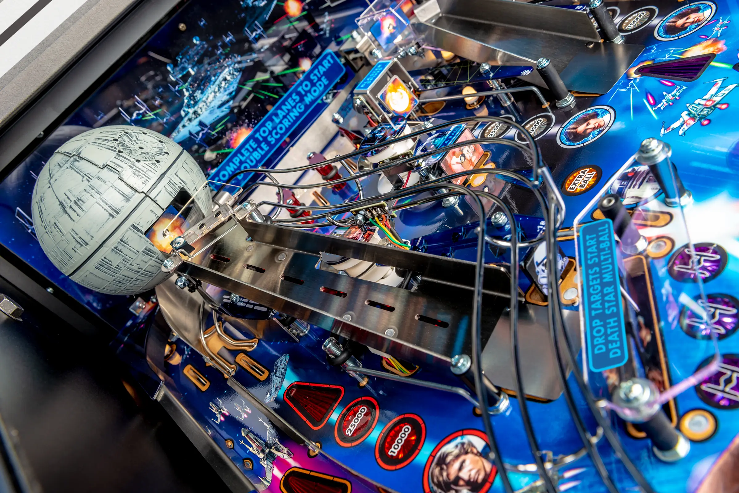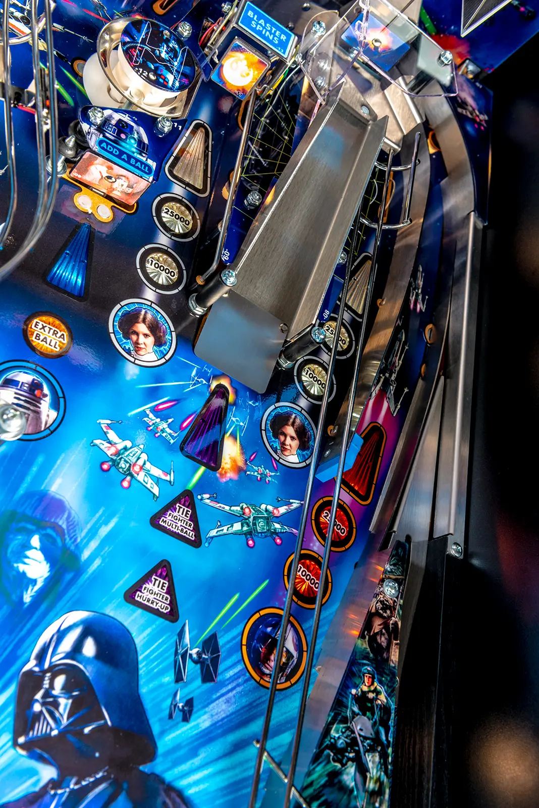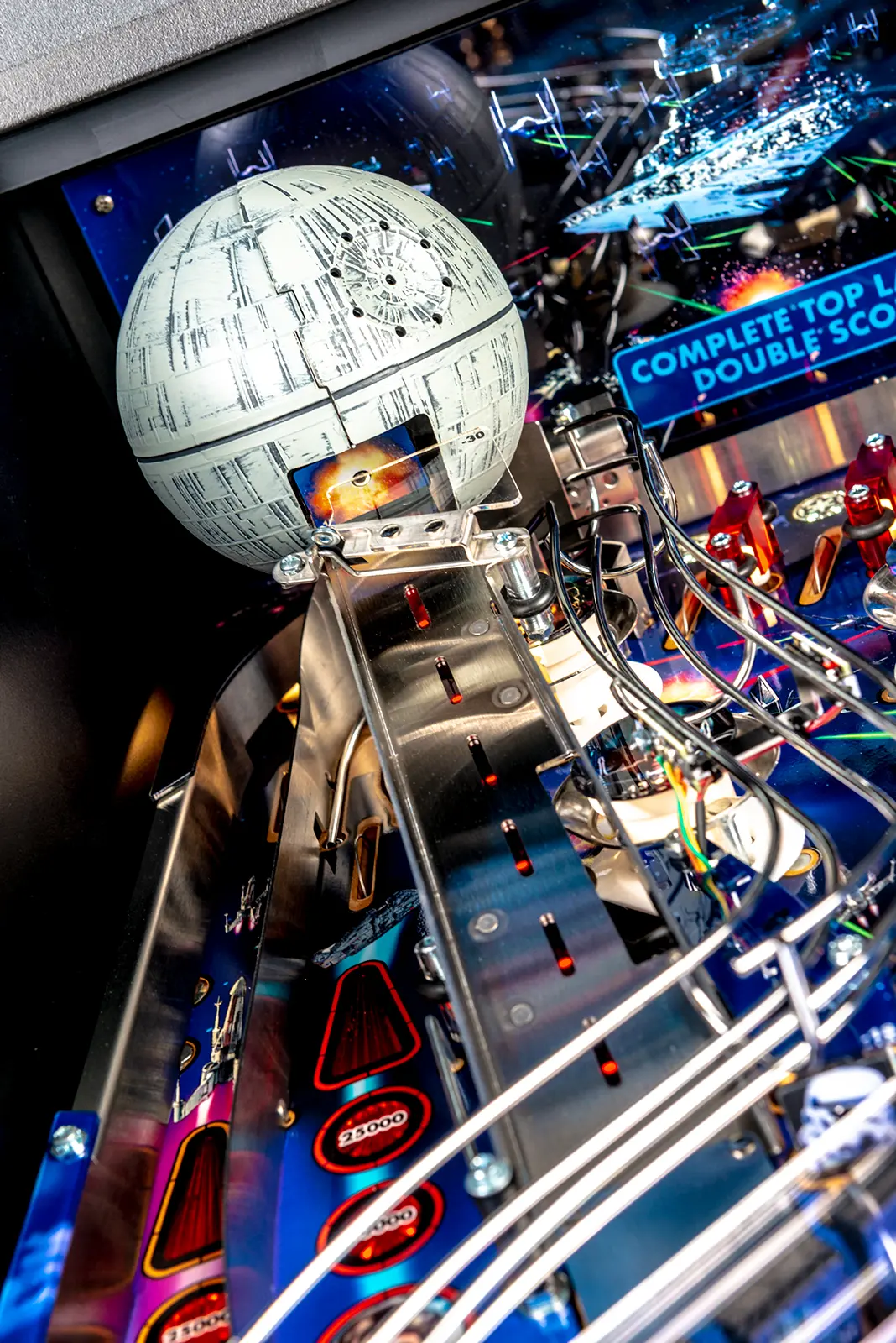 Stern Pinball’s Star Wars™ Home Edition™ is a new stylish, affordable and fun pinball machine designed and engineered for the home. Stern’s new Star Wars™ Home Edition™ immerses players in the dynamic Star Wars™ galaxy. The Home Edition™ is packed with features that provide players with an irresistible game experience including select speech and footage from the original Star Wars™ trilogy, color-changing playfield inserts, a custom sculpted Death Star, and a custom sculpted and interactive TIE fighter.