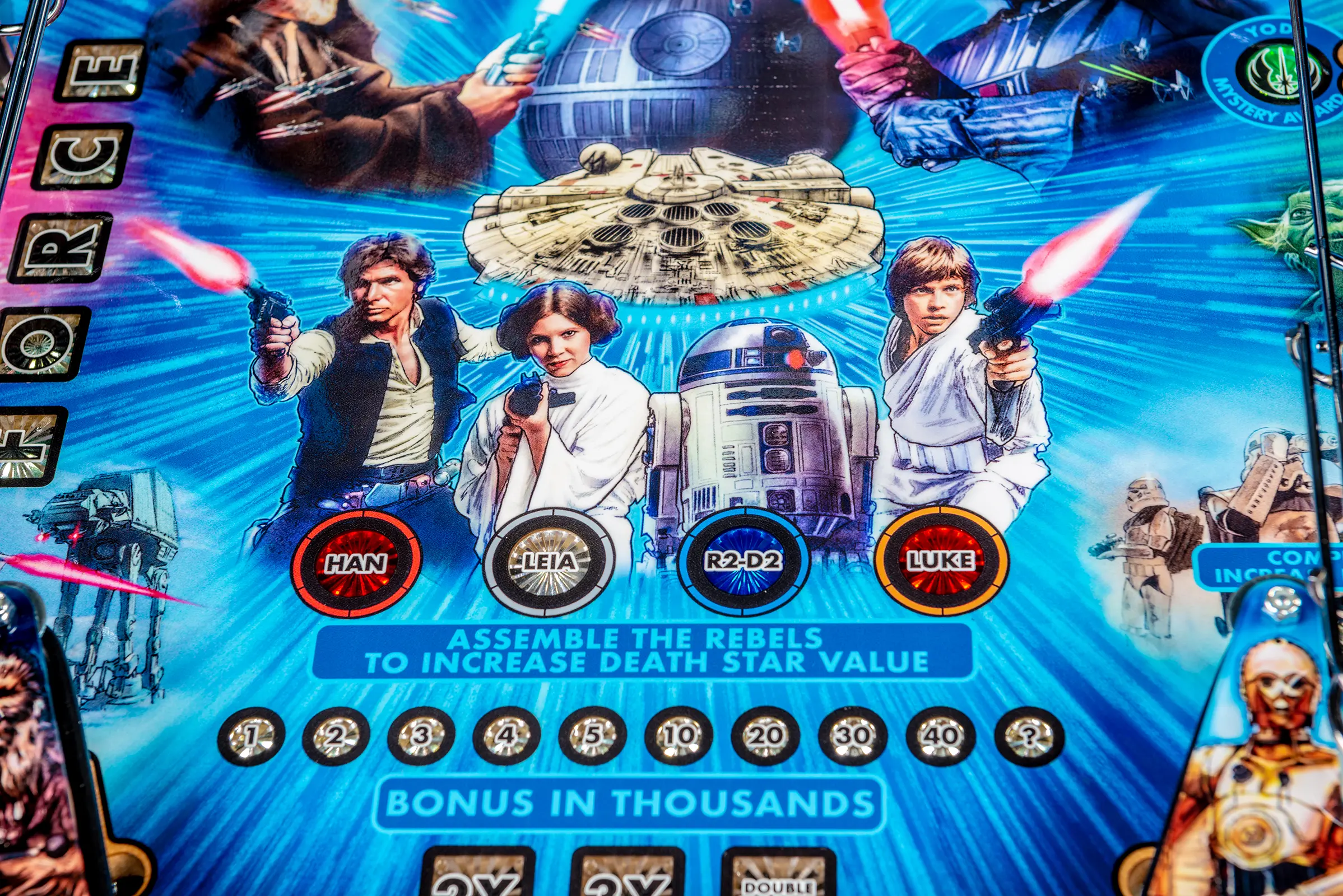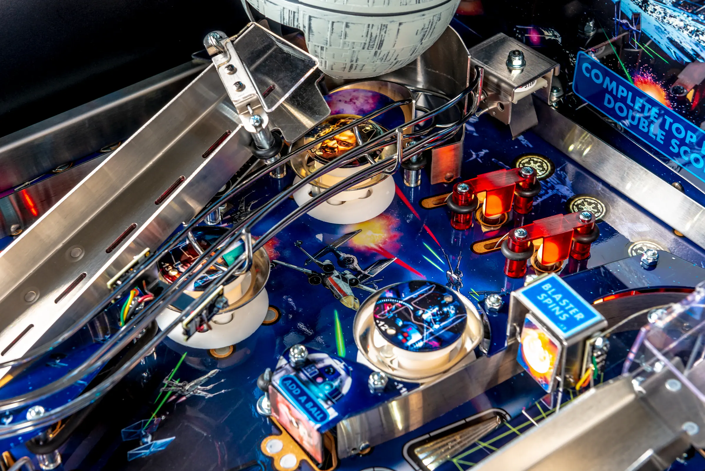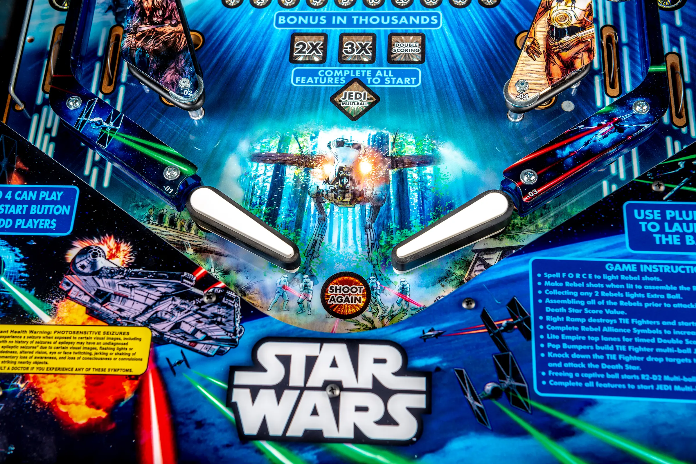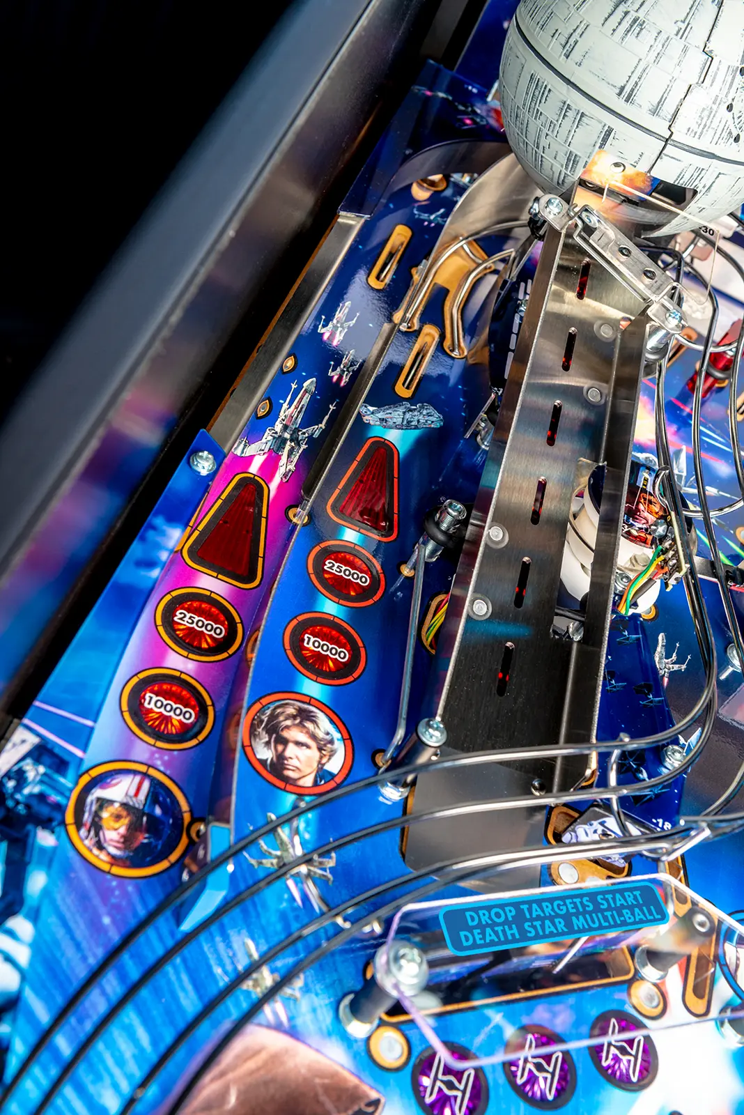 Stern Pinball’s Star Wars™ Home Edition™ is a new stylish, affordable and fun pinball machine designed and engineered for the home. Stern’s new Star Wars™ Home Edition™ immerses players in the dynamic Star Wars™ galaxy. The Home Edition™ is packed with features that provide players with an irresistible game experience including select speech and footage from the original Star Wars™ trilogy, color-changing playfield inserts, a custom sculpted Death Star, and a custom sculpted and interactive TIE fighter.