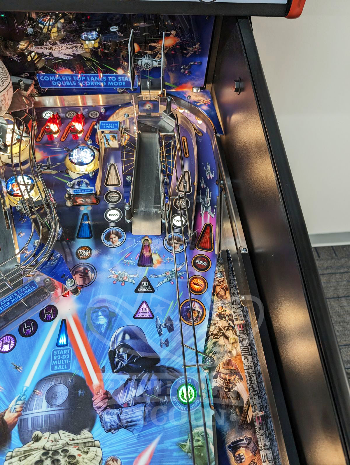 Stern Pinball’s Star Wars™ Home Edition™ is a new stylish, affordable and fun pinball machine designed and engineered for the home. Stern’s new Star Wars™ Home Edition™ immerses players in the dynamic Star Wars™ galaxy. The Home Edition™ is packed with features that provide players with an irresistible game experience including select speech and footage from the original Star Wars™ trilogy, color-changing playfield inserts, a custom sculpted Death Star, and a custom sculpted and interactive TIE fighter.