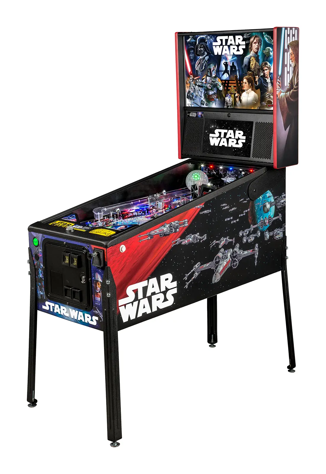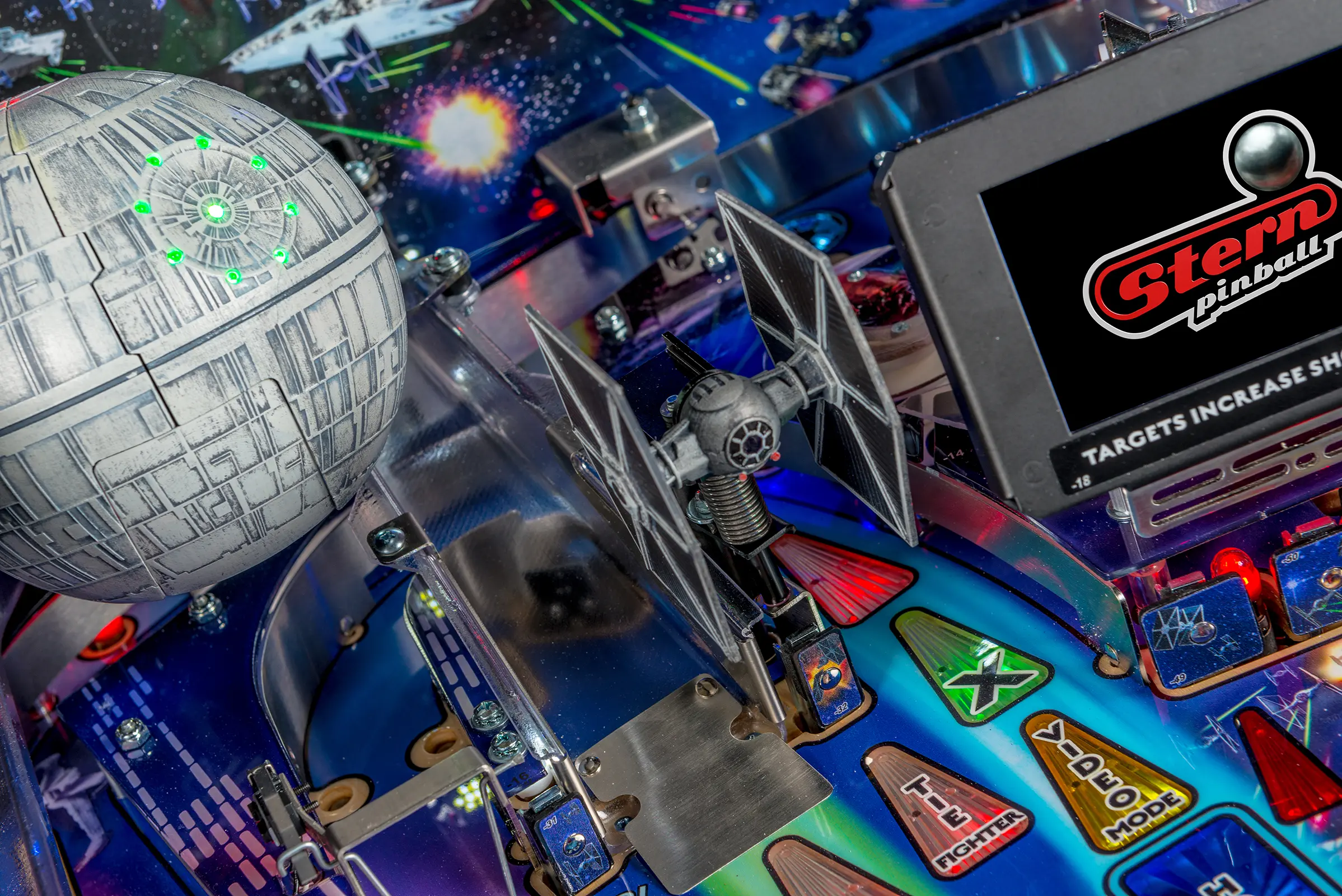 - Features color-changing playfield inserts and a custom sculpted and interactive TIE fighter.