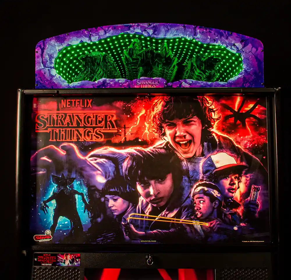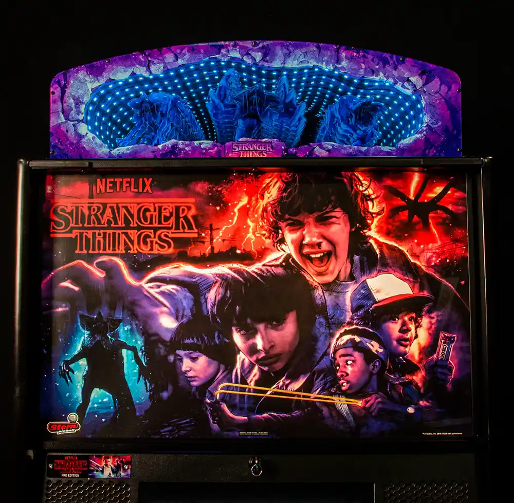 Step into the world of the Upside Down with this officially licensed Stranger Things topper. Fits all 3 models - Pro, Premium and Limited Edition Stern pinball machines. Featuring everyone's favorites Demodogs and a Demogorgon. This color changing topper changes colors throughout gameplay for an eerie, hypnotic effect!