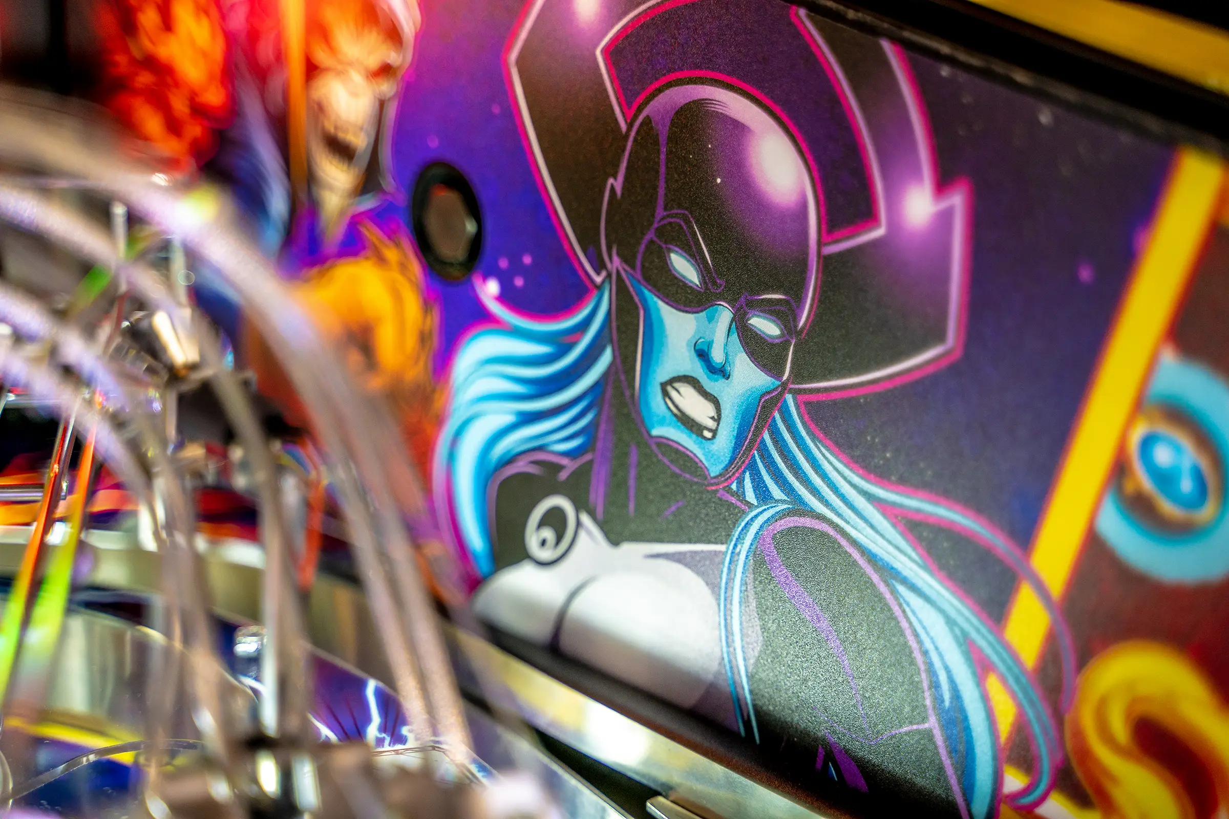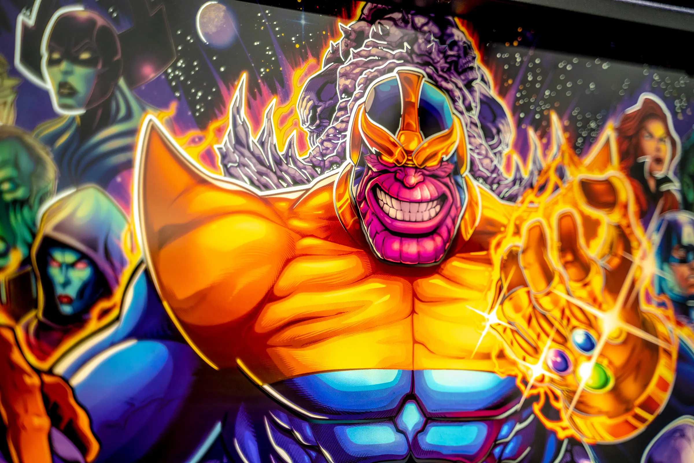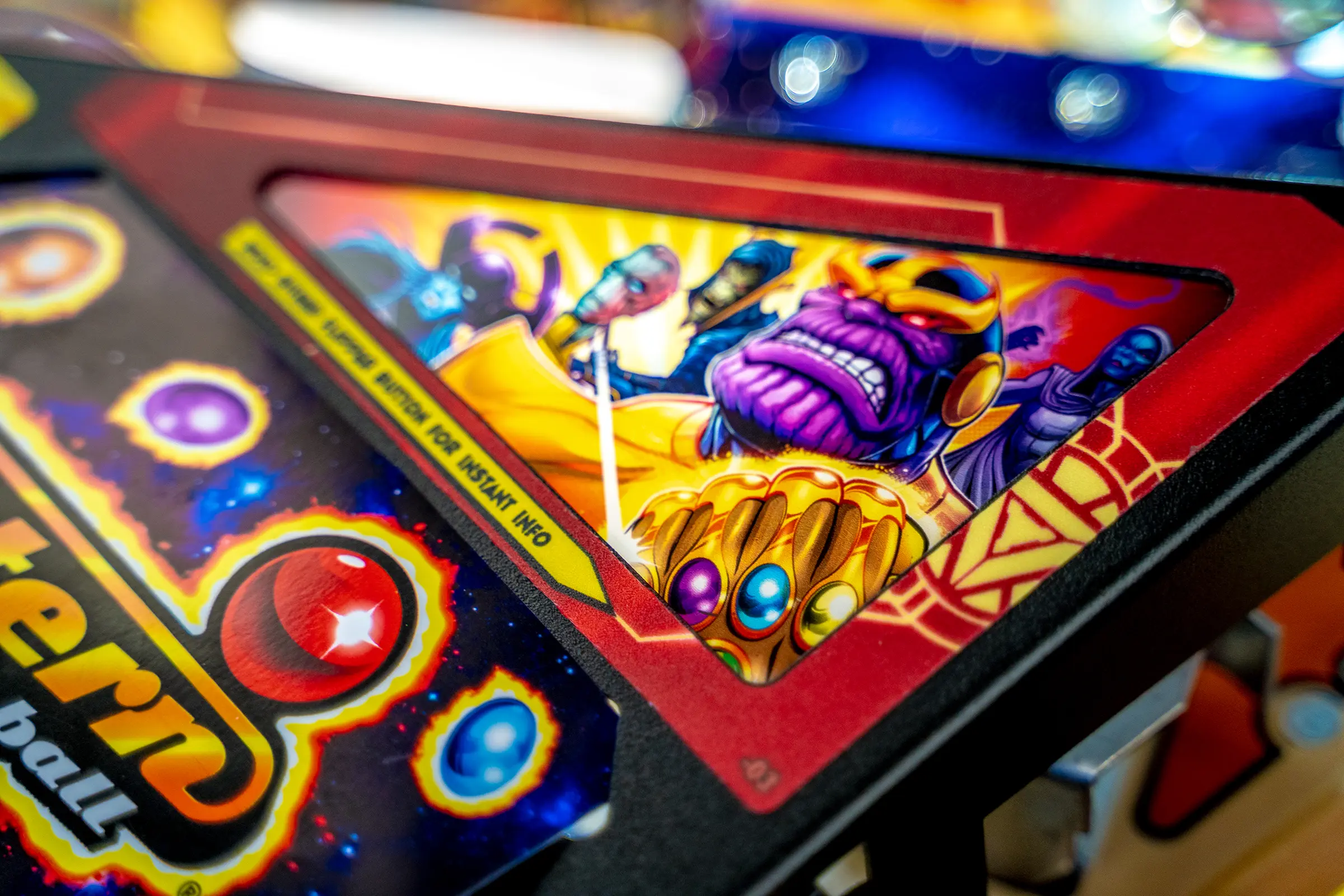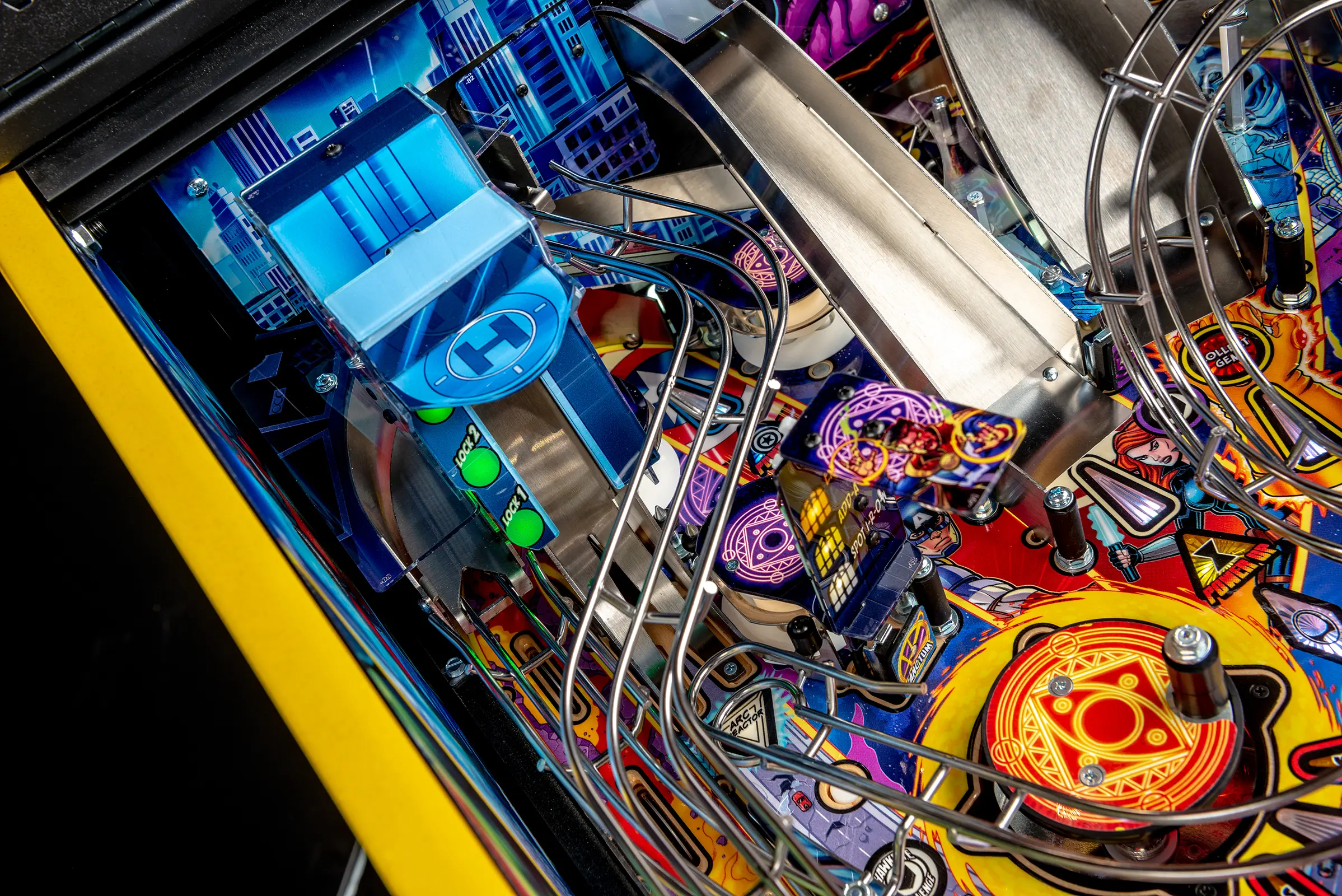 The Premium and Limited Edition models feature an interactive Dr. Strange motorized pop-up disc scoop, transporting pinballs into an underground Portal, a visible subway capable of holding and staging up to 3 balls through custom playfield windows accentuated with dynamic RGB lighting effects.  These models also include a custom sculpted Thanos Infinity Gauntlet integrated with atmospheric light-up gems, a Captain Marvel inverse gravity custom wireform ramp, and a Pym Laboratories vertical up-kicker.
