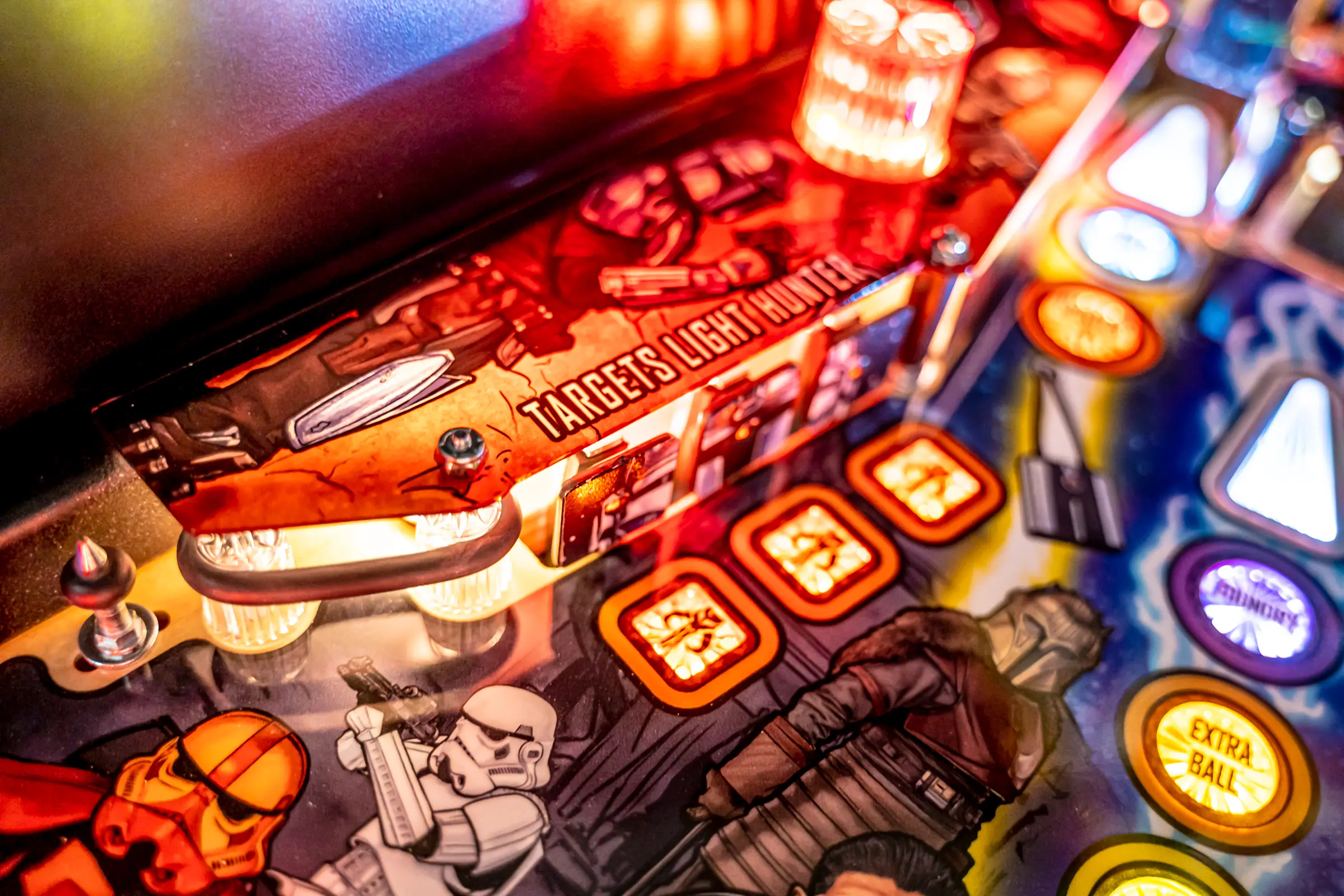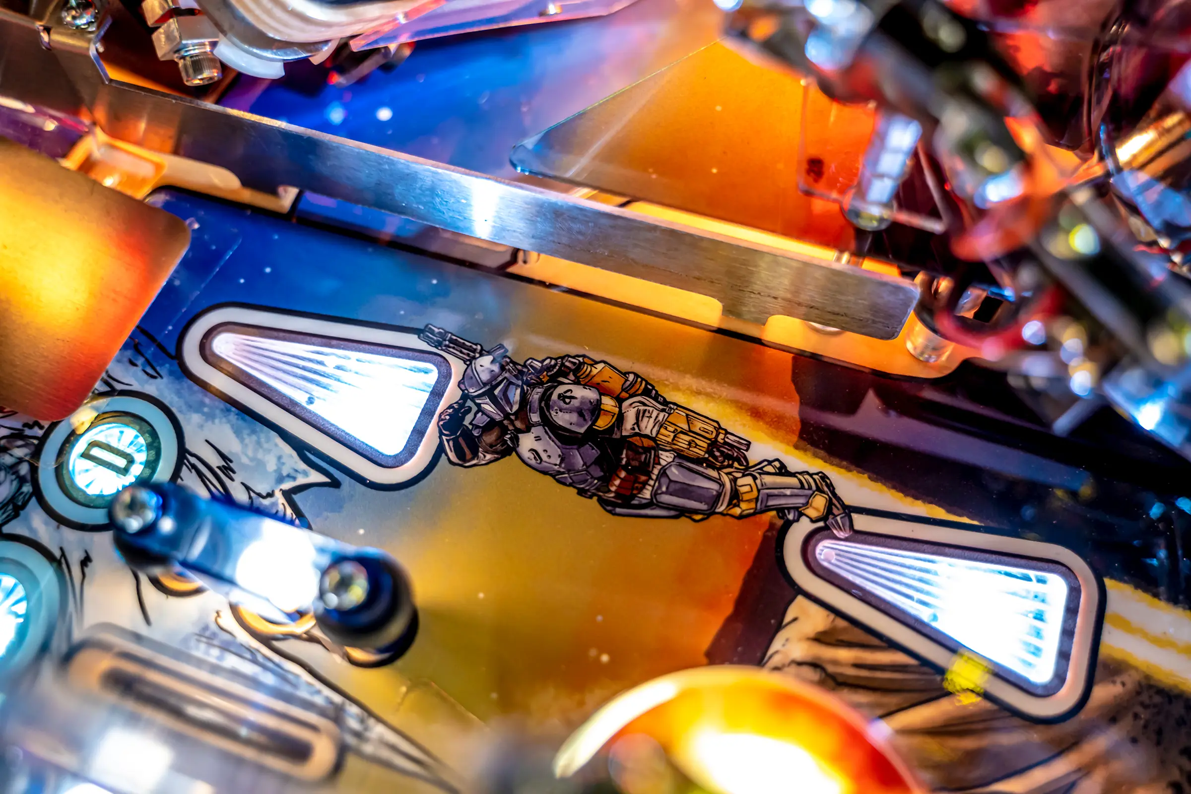 Premium model features the 'Mandalorian and allies against the Imperials' full color translite and iconic side cabinet hand-drawn artwork by Randy Martinez.