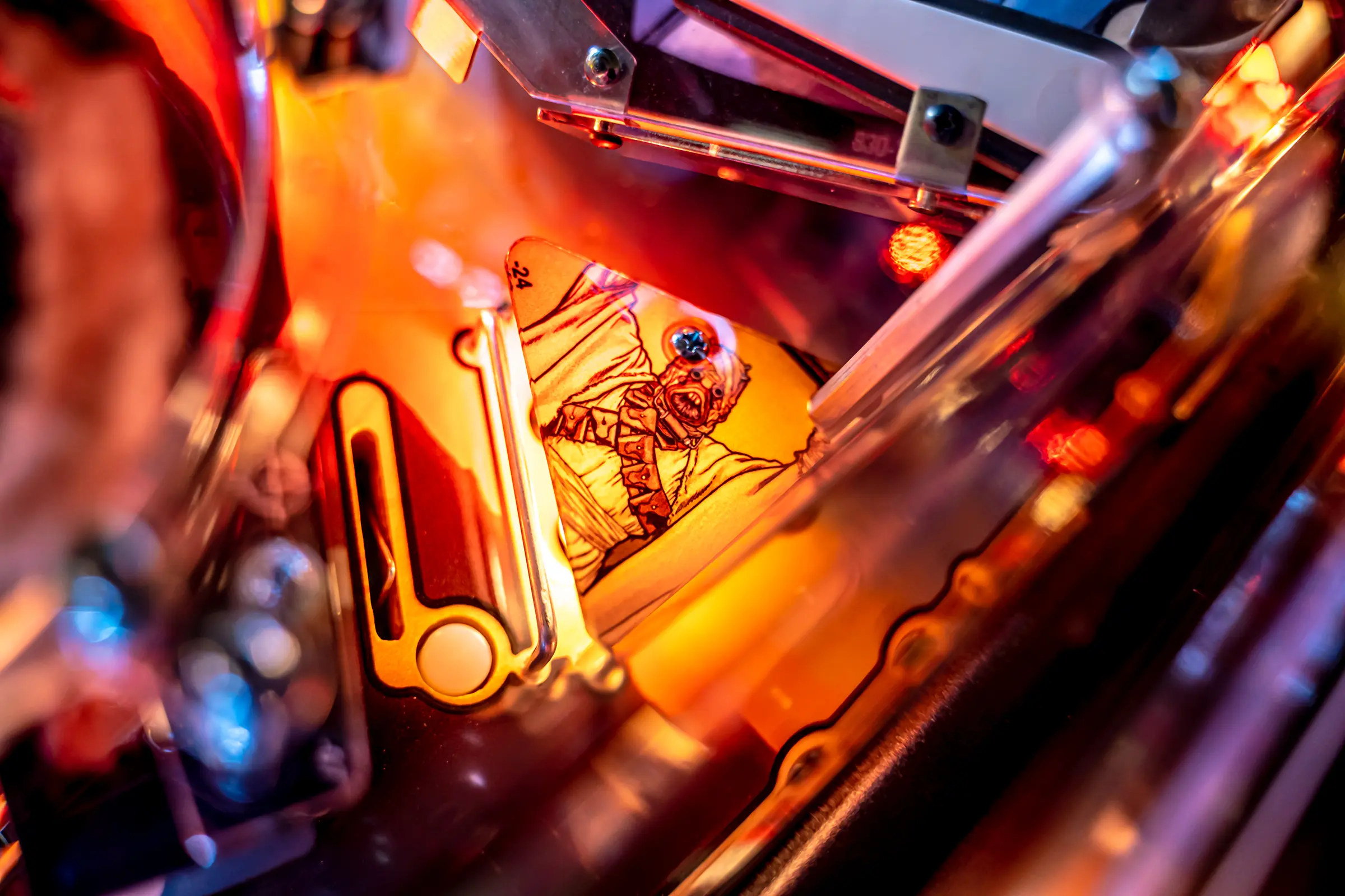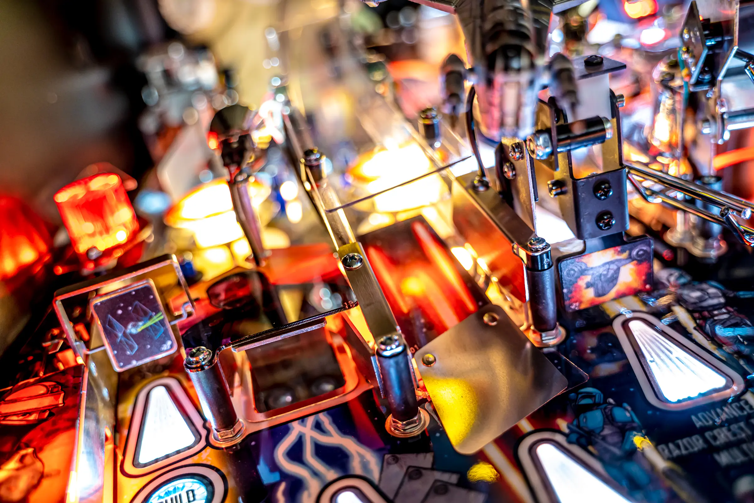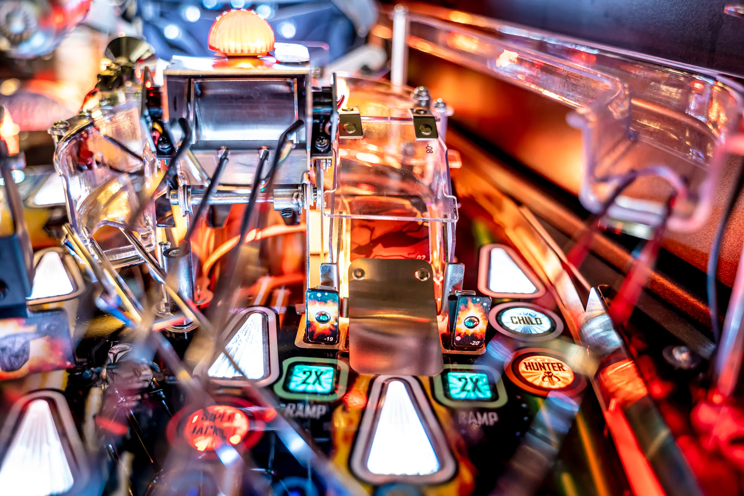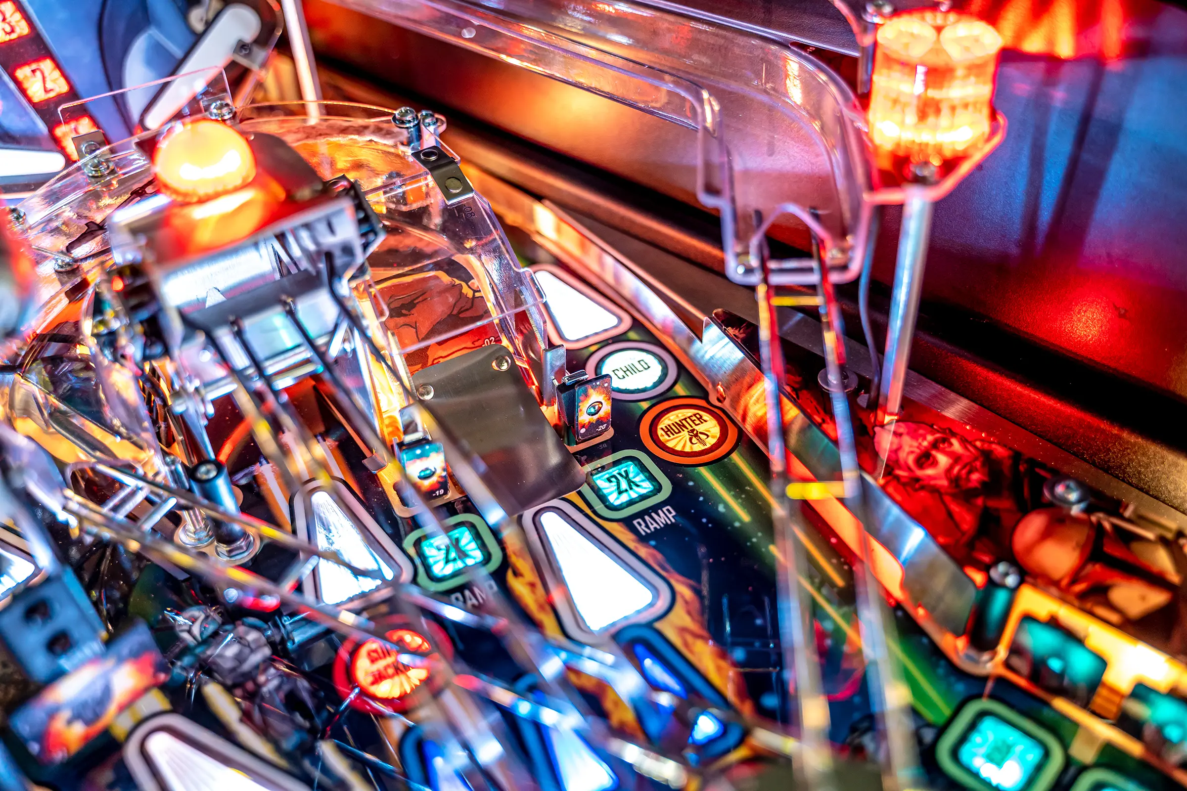 Players can navigate their way to multiball mayhem by hitting a unique hanging uplift target attached to a custom molded Razor Crest ship. Success in hitting the target qualifies a center ramp shot on the Pro, Premium, and Limited Edition models.
