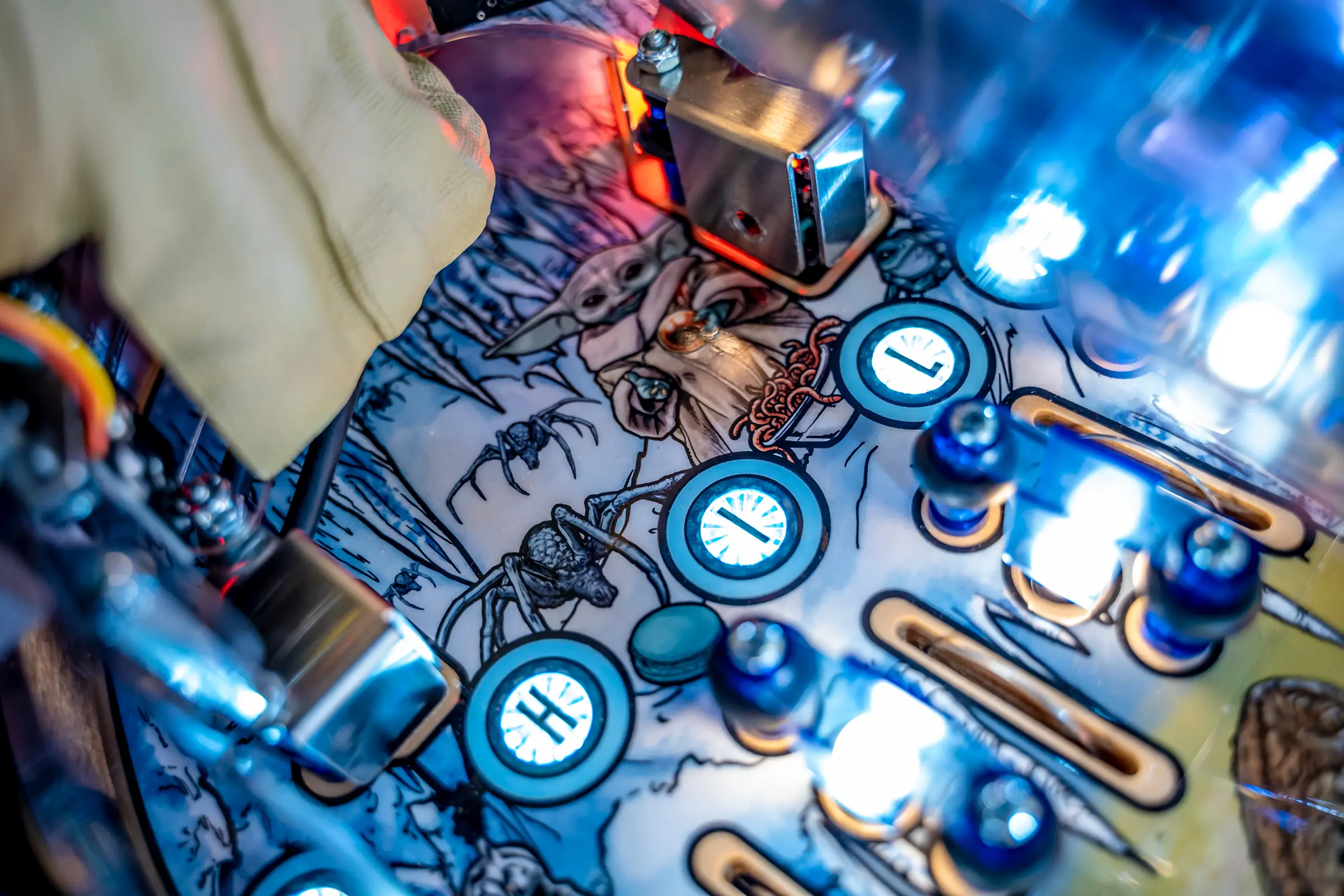 Features of The Mandalorian-inspired pinball machines include a large custom sculpture of Grogu, authentic video and audio from seasons one and two, and exclusive custom speech performed by actor Carl Weathers (Greef Karga). The game includes the iconic title theme song by Ludwig Göransson and stunning hand-drawn artwork by Randy Martinez, one of today’s most popular comic artists.