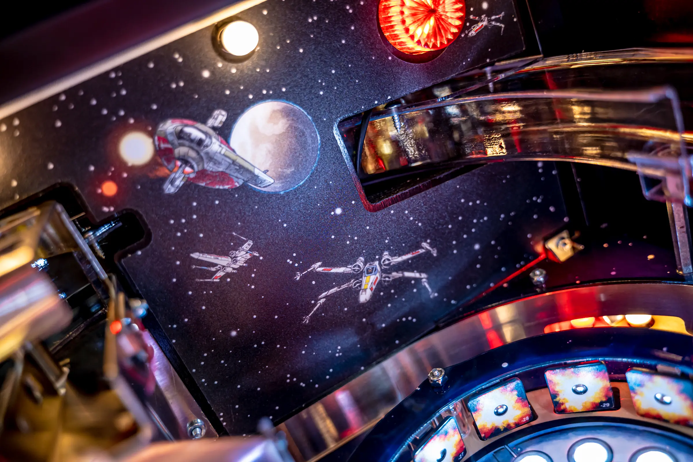 Players can navigate their way to multiball mayhem by hitting a unique hanging uplift target attached to a custom molded Razor Crest ship. Success in hitting the target qualifies a center ramp shot on the Pro, Premium, and Limited Edition models.