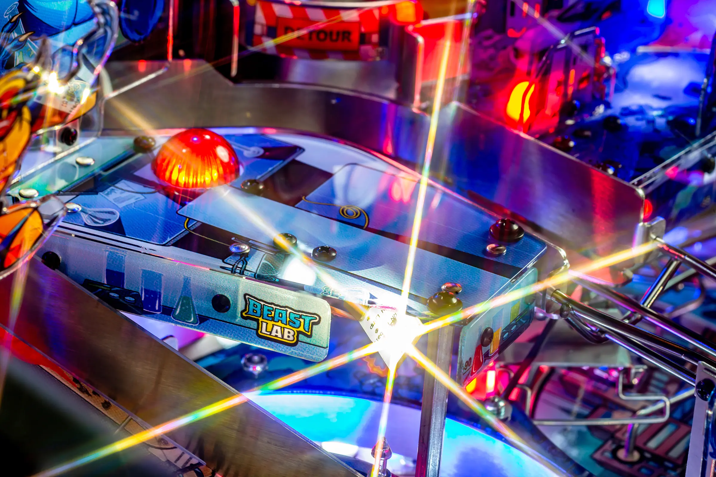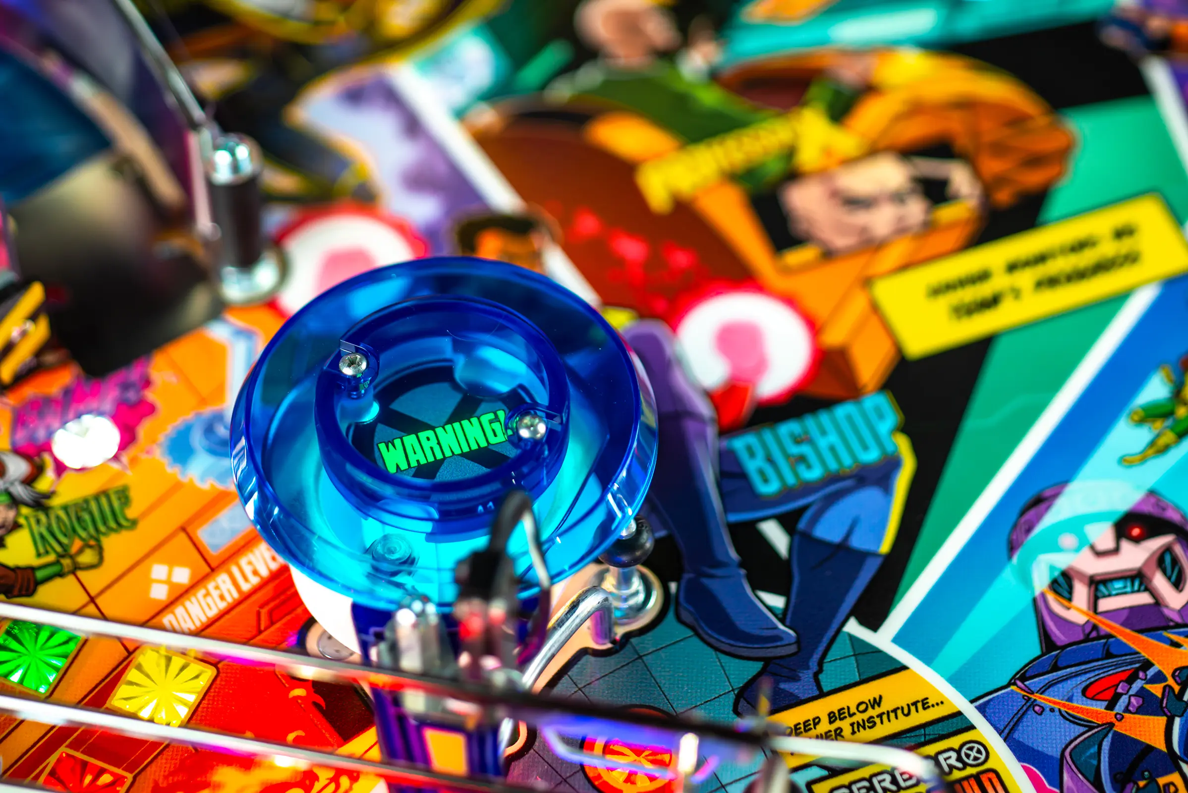 The Uncanny X-Men playfield is a unique pinball layout that features an array of new crossing shots and ramp designs with surprising ball trajectories to deliver kinetic satisfaction. The all-new Danger Room design, located to the left of the main flippers, offers a high-risk, high-reward experience that includes a mini-flipper and a novel outlane spinner. Premium and Limited Edition models also include an all-new elevated captive ball vari-target themed as Beast’s Lab.